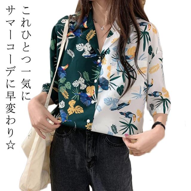 アロハシャツ レディース 夏 シャツ 半袖 花柄シャツ トップス ブラウス ボタニカル柄 大きいサイズ バイカラーシャツ 花柄 トップス ダンス 衣装 ヒップホップ コスチューム 開襟 可愛い 開襟シャツ カジュアル 旅行 サマーウエア リゾート 大きいサイズ ゆったり おしゃれ