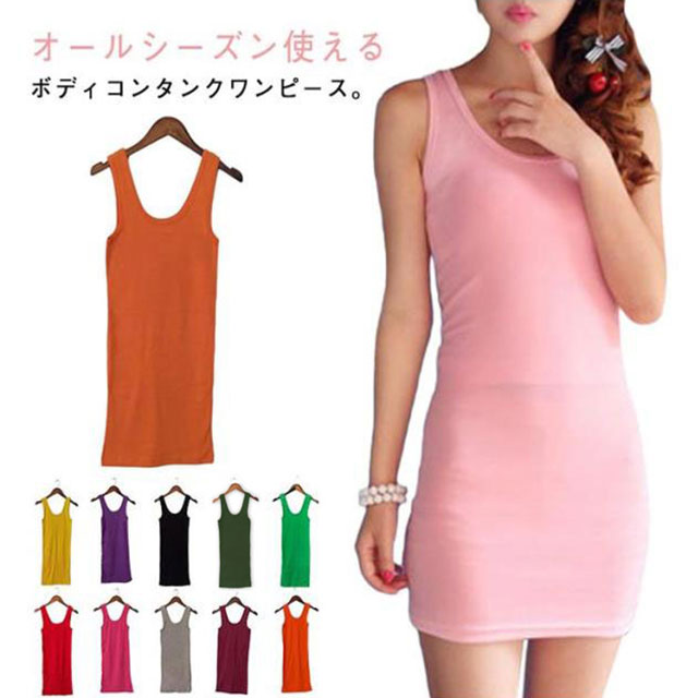 | 豊富な20展開で色違いで大正解。 オールシーズン使えるボディコンタンクワンピース。 伸縮性の高いニット生地が体にほどよくフィットしてスタイル美人♪ お尻までカバーしてくれる膝上丈で使いやすさもバツグン◎ 1枚ではもちろん、レギンスやパンツを合わせたり、胸元のあいたカットソーやニットとあわせてと一年中活躍すること間違いなしです。 Tシャツやシャツ、ブラウス、ニットやハイネック、タートル、スウェットなどさまざまなトップスでコーディネートを楽しめます。 | |