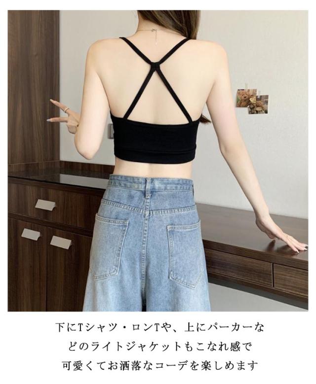 レディース カップ付き キャミソール クロップド丈 オープンバック ブラトップ トップス カップ付き インナー 下着 アンダーウェア 背中見せ ショート丈 レイヤード 薄手 伸縮性 裏地 おしゃれ セクシー 春夏 送料無料