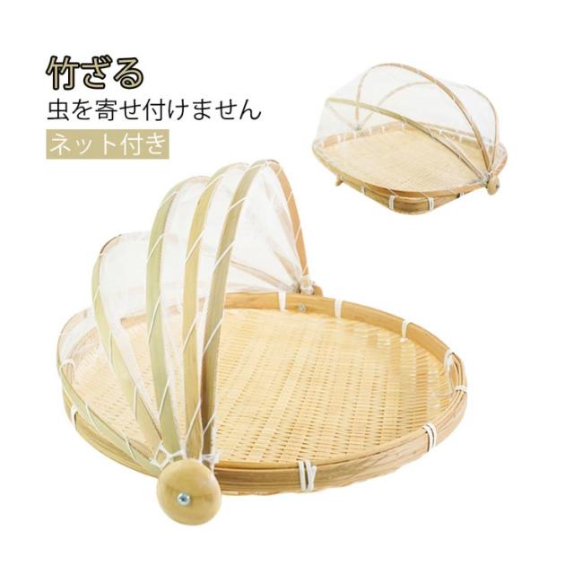 竹ざる ネット付き 天然素材 2タイプ 竹ざる 梅干し ザル 虫対策 水切りザル 竹かご 梅干しざる 山菜 梅干し 梅ざる ウメ 天日干し 丸型 角型 干し野菜バスケット キャンプ アウトドア 魚介 乾燥 干し野菜 漬物 盆ざる 通気 陰干し 収納 保存 使いやすい 実用 多機能