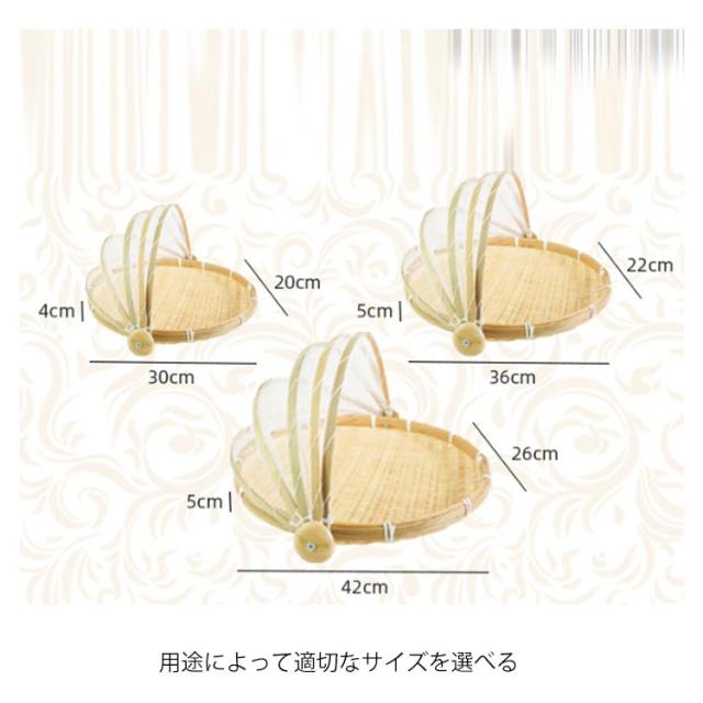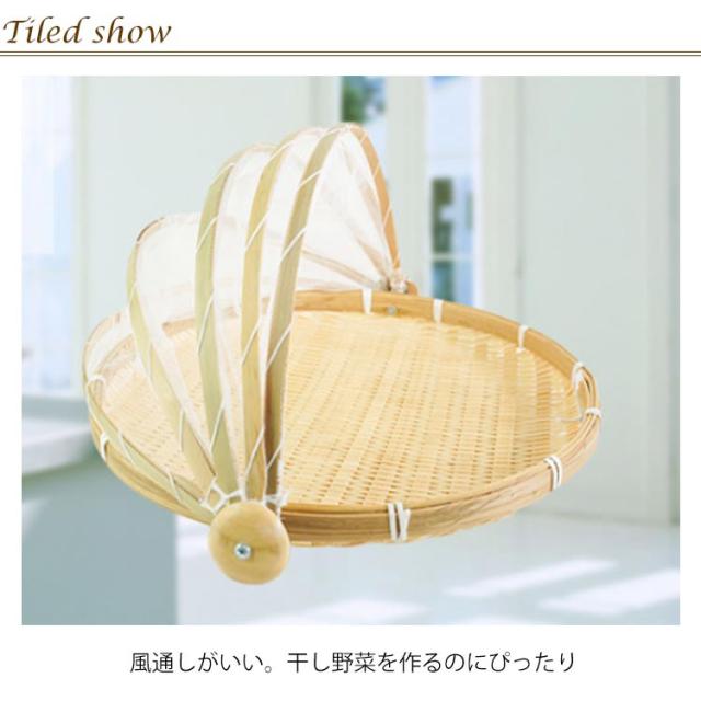 | 竹ざる ネット付き。虫を寄せ付けません 用途によって適切なサイズを選べる 風通しがいい。干し野菜を作るのにぴったり | |