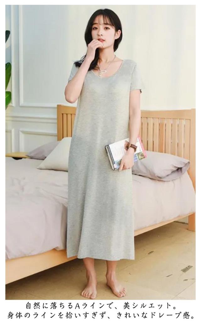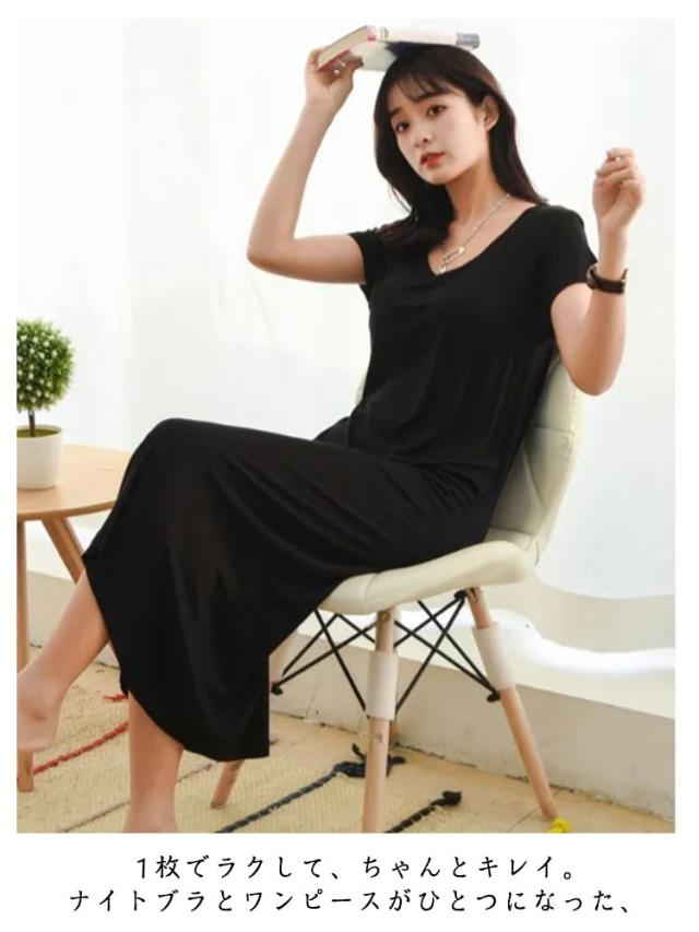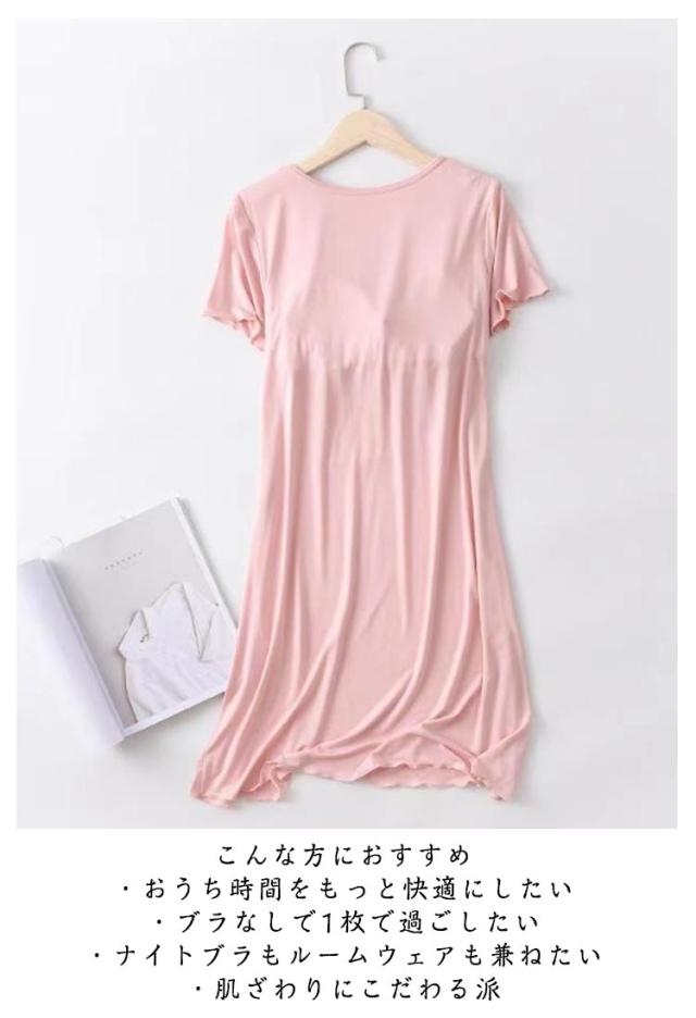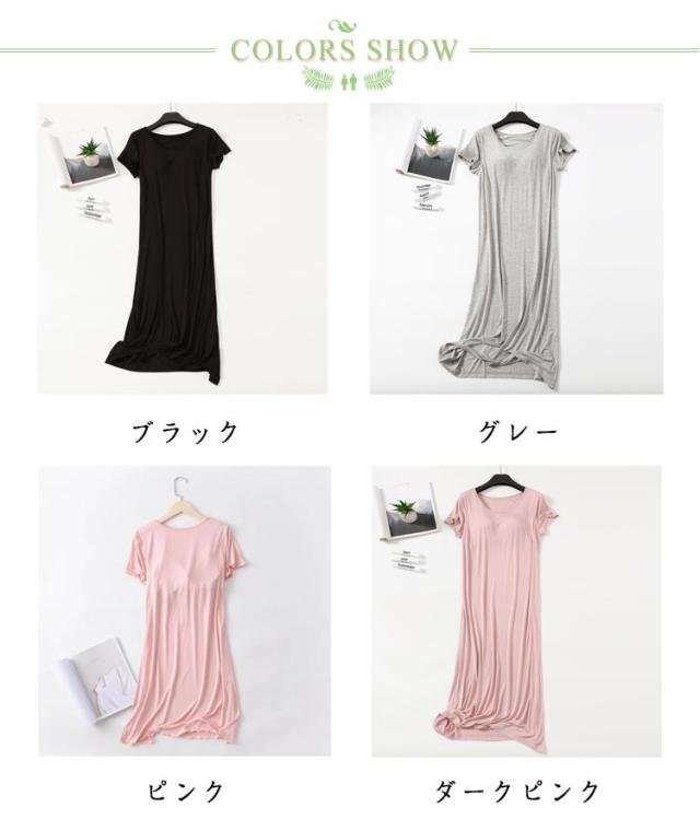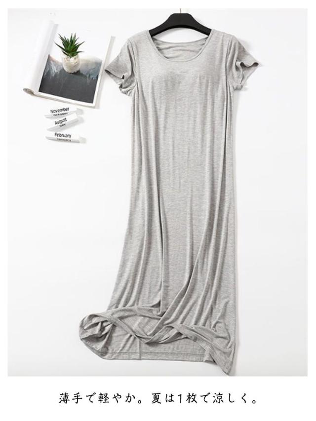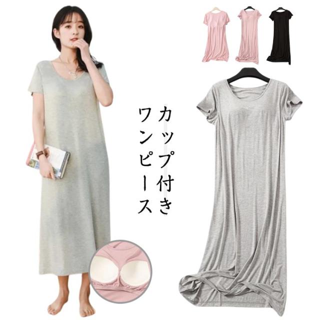 カップ付き ワンピース パジャマ ワンピース カップ付き レディース 部屋着 半袖 マキシワンピース パジャマ 夏 ナイトブラ一体型 モダール ロング丈 無地 ルームウェア ロングTシャツ 可愛い かわいい ランジェリー 大きいサイズ 春 夏 薄手 無地 シンプル 送料無料