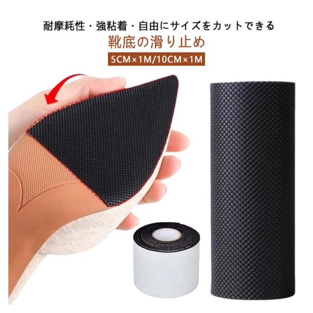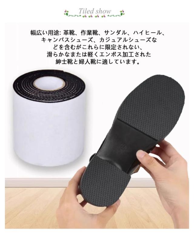 【4巻セット】靴底 滑り止めシート スリップ対策 厚くする 耐摩耗性 ソール 補修 不浸透性の 滑り止めステッカー 靴底 補修 強粘着テープ 静音 靴滑り止め 貼り付けるだけ カット可能 ソール保護 5cm×1m 10cm×1m 厚さ3mm 黒 ブラック ベージュ キャメル 透明