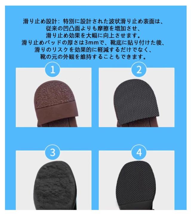 | 貼り付けるだけ! 耐摩耗性・強粘着・自由にサイズをカットできる 靴底の滑り止め 5CM×1M/10CM×1M 【4巻セット】 ★セット内容:各セットに5枚含まれており、足裏の形状に合わせて自由にカットでき、完璧にフィットします。 ★素材の利点:耐摩耗性、無臭のゴム製で、優れた耐摩耗性と引張強度を備えており、日常の磨耗から靴底を効果的に保護します。接着力が強く脱げにくい裏地を採用し、ソールのグリップ力と耐久性を大幅に向上させました。 ★滑り止め設計:特別に設計された波状滑り止め表面は、従来の凹凸面よりも摩擦を増加させ、滑り止め効果を大幅に向上させます。滑り止めパッドの厚さは3mmで、靴底に貼り付けた後、滑りのリスクを効果的に軽減するだけでなく、靴の元の外観を維持することもできます。 ★使いやすい:ご使用前に、靴底をアルコールで拭いて油汚れを取り除くことをお勧めします。必要に応じて滑り止めインソールの形状をカットし、底紙を剥がして足裏またはかかと部分に貼り付けます。滑り止め効果に影響を与えないように、ご使用の際は靴底が平らであることを確認してください。 ★幅広い用途: 革靴、作業靴、サンダル、ハイヒール、キャンバスシューズ、カジュアルシューズなどを含むがこれらに限定されない、滑らかなまたは軽くエンボス加工された紳士靴と婦人靴に適しています。オフィスでも、アウトドアでも、レジャーでも、信頼性の高い足裏保護と滑り止め機能を提供します。 | |