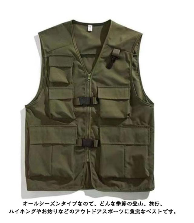 | シンプルなデザインで、丈夫と機能性に両立でき、またかっこ良さもいい、夏にはポロシャツの上に着るのは最適です。 通気性、速乾、防風性、着用も便利です。 登山、ランニング、キャンプ、サイクリング、ゴルフなど幅広い野外活動にお勧め。 オールシーズンタイプなので、どんな季節の登山、旅行、ハイキングやお釣りなどのアウトドアスポーツに重宝なベストです。 ゆったりとしたシルエットと個性的なマルチポケットがあり大人気! | |