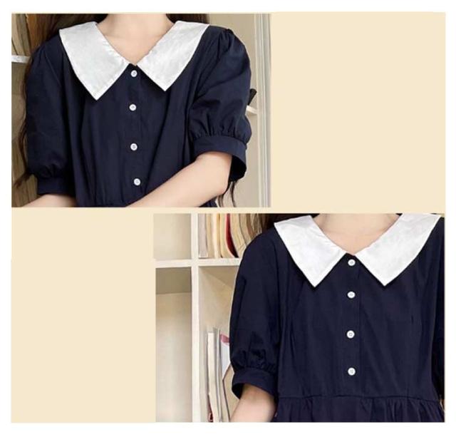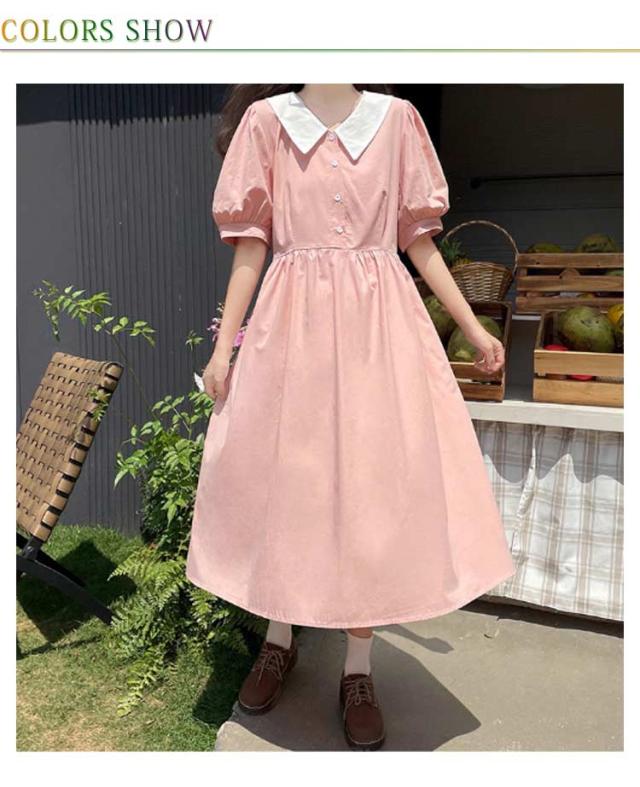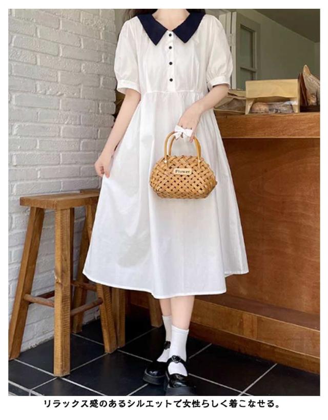 体型カバー レディース 襟付きワンピース ゆったり 夏 無地 無地 高校生 半袖 半袖 大きいサイズ ロングワンピース 中学生 韓国風 きれいめ