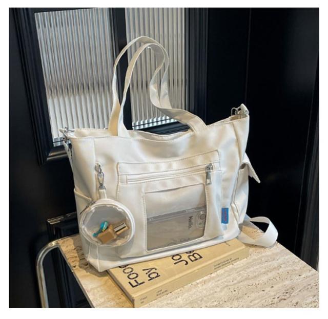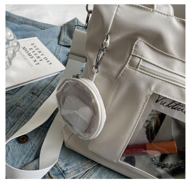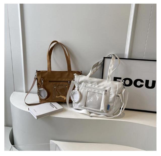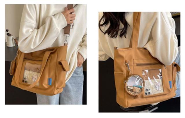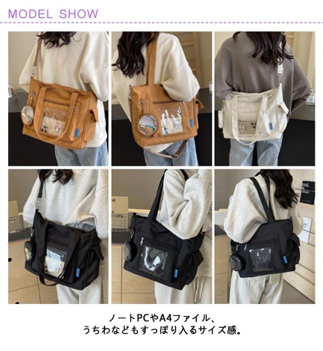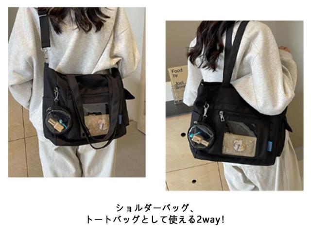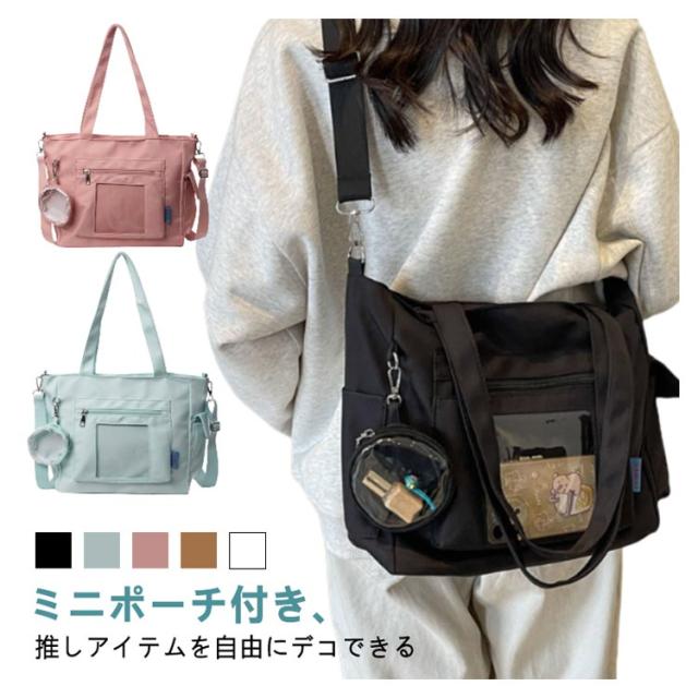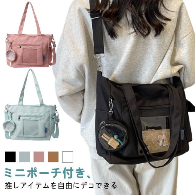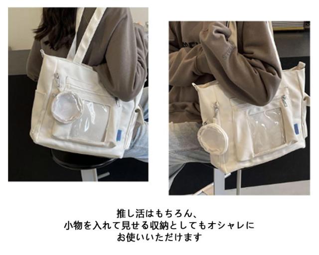 大容量 痛 ミニポーチ付き ショルダーバッグ A4 透明バッグ 帆布バッグ 2way トートバッグ バッグ スクール バッグ 斜めがけ 通学 通勤 旅行 オタ活 推し活