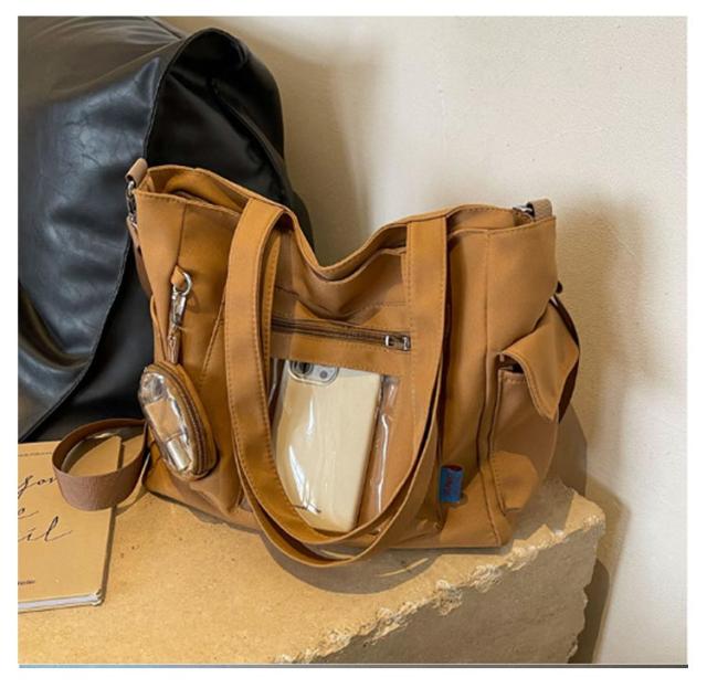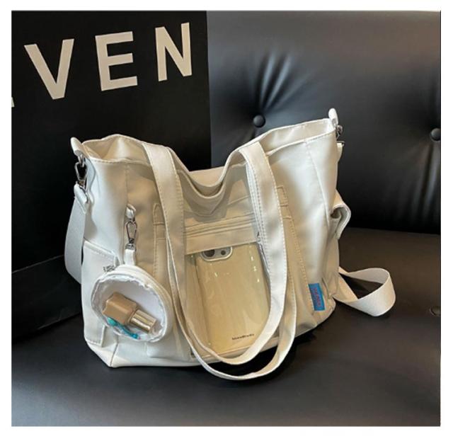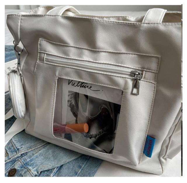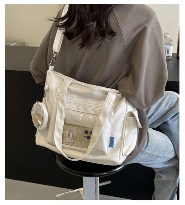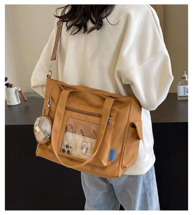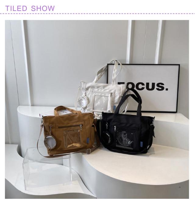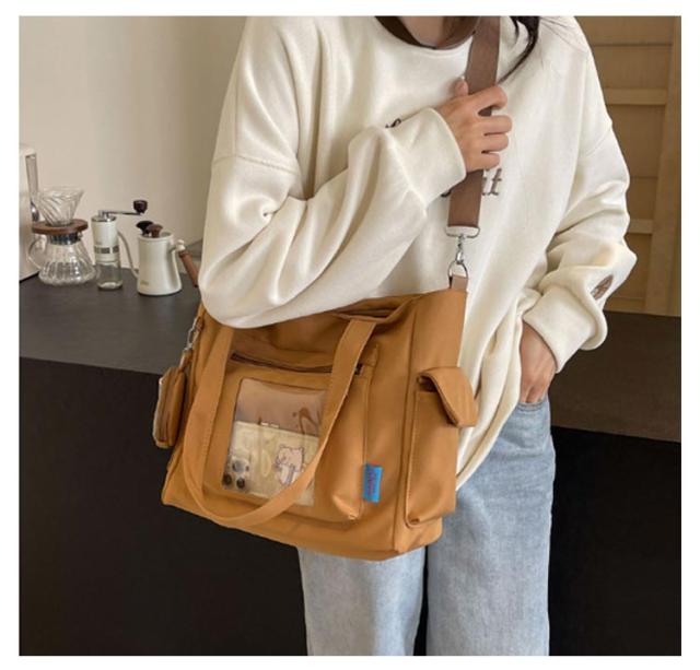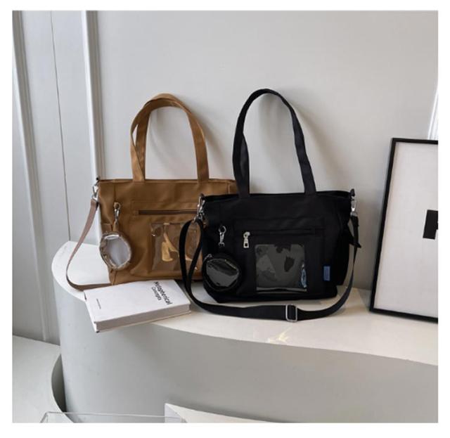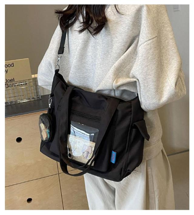 大容量 痛 ミニポーチ付き ショルダーバッグ A4 透明バッグ 帆布バッグ 2way トートバッグ バッグ スクール バッグ 斜めがけ 通学 通勤 旅行 オタ活 推し活