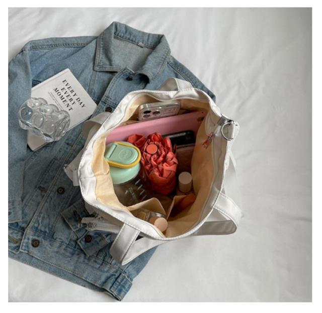 | ミニポーチ付き、推しアイテムを自由にデコできる♪ ノートPCやA4ファイル、うちわなどもすっぽり入るサイズ感。 ショルダーバッグ、トートバッグとして使える2way! 推し活はもちろん、小物を入れて見せる収納としてもオシャレにお使いいただけます◎ | |