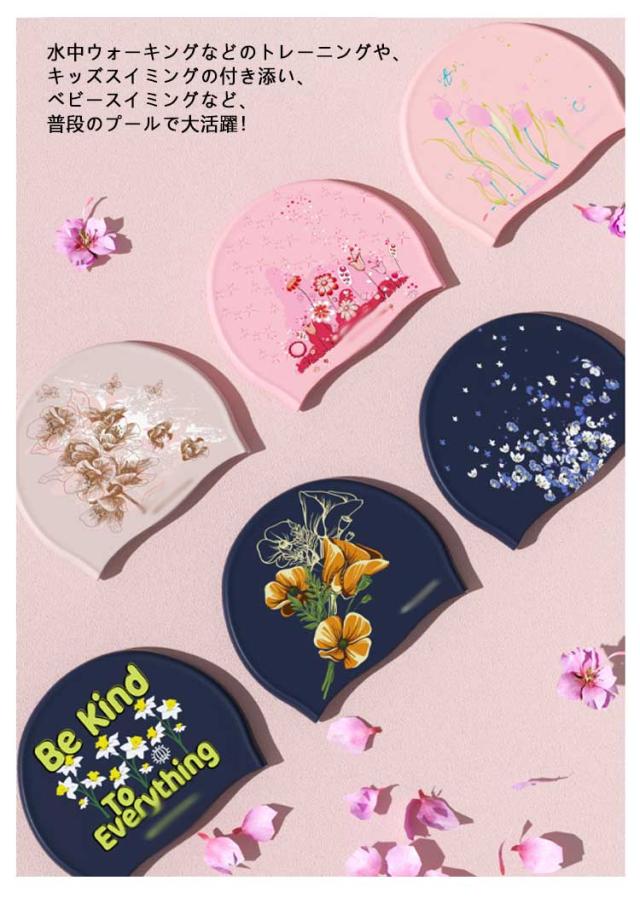 | 【2点セット】 美しい花柄のシリコンスイムキャップ 伸縮性抜群なので、髪の毛が長い方でも、まとめて帽子にスマートに収まります。 シリコン素材を用いており、頭にピッタリとフィットするので、水の抵抗を受けにくく、髪が濡れにくいので髪や頭皮を塩素から守ってくれます。 女性らしい美しい花柄を設計して、スイム時間を彩りします。 水中ウォーキングなどのトレーニングや、キッズスイミングの付き添い、ベビースイミングなど、普段のプールで大活躍! | |