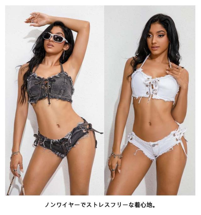 水着 レディース ビキニ おしゃれ ビキニ 水着 ジーンズ かわいい セットアップ 上下セット ショートパンツ ブラ 20代 セパレート セクシー デニム バスト 盛れる オトナ女子 フェミニン 30代 40代 ノンワイヤー S M