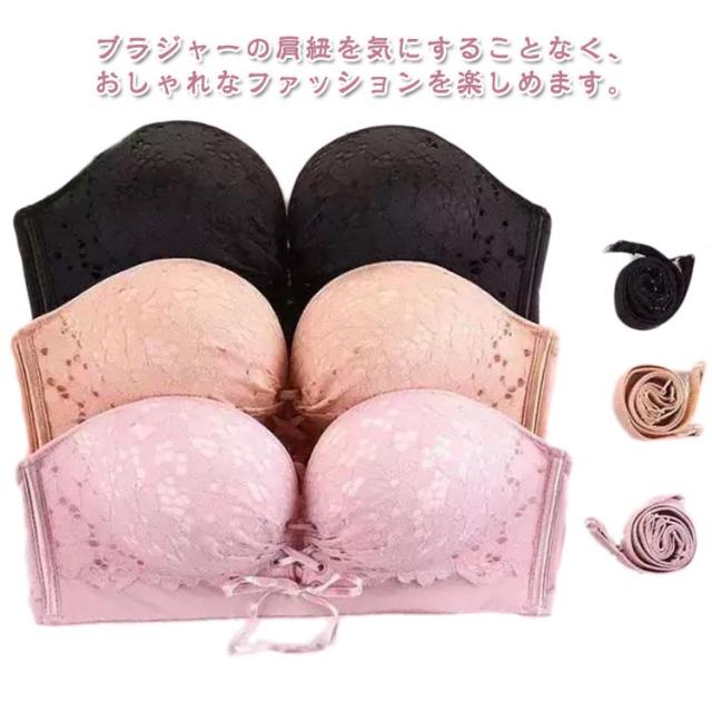 ブライダルインナー 紐なしブラ ブラジャー オフショルダー 肩紐なし チューブトップ 育乳 ブラ紐なし ストラップレスブラ ブラジャー ノンワイヤー 盛り レース ストラップレスブラ 谷間 脇高 可愛い おしゃれ
