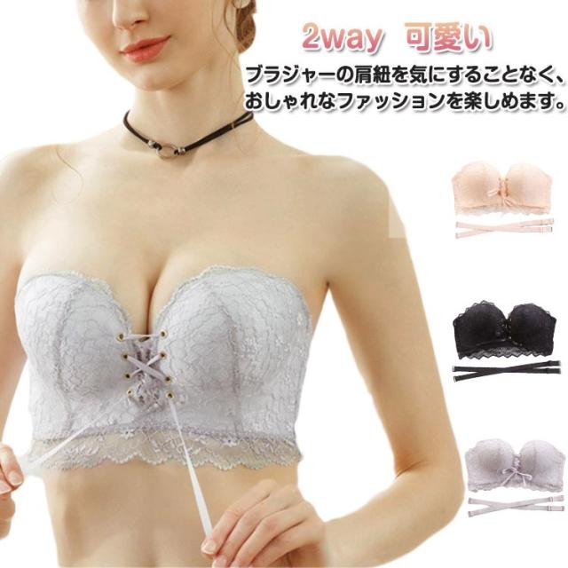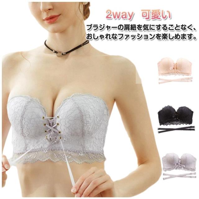 ストラップレスブラ ブラ紐なし ブラ 肩紐なし オフショルダー 盛り ブライダルインナー チューブトップ ブラジャー 紐なしブラ 2way ブラジャー ノンワイヤー ストラップレスブラ レース 育乳 谷間 脇高 可愛い おしゃれ