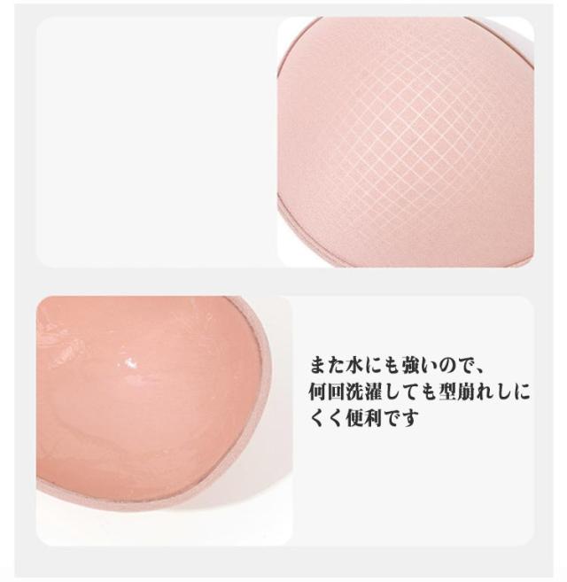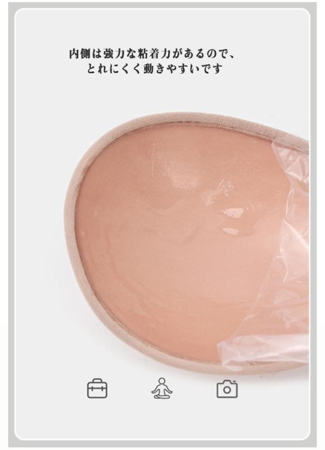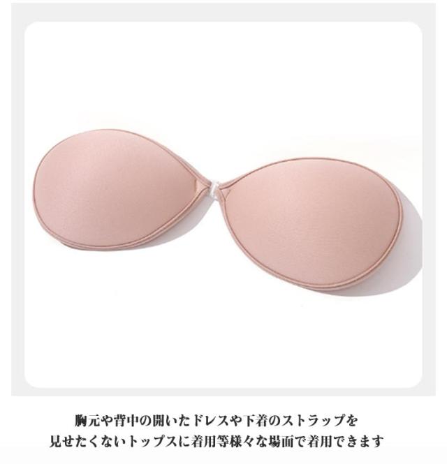 | 酷暑で蒸れないヌーブラジャー 【ストラップ無しでコーデがおしゃれにきまるシームレス シリコンブラ】 強力な粘着力を持ち肩紐がないので、ドレスや水着等にもおすすめなシリコンブラです 高品質なシリコンを使用しているので、軽くて型崩れしにくく蒸れにくいです 【肩紐無しデザイン】 肩紐がないデザインなので、大胆なドレスやコスプレ等に合わせやすいデザインです 内側は強力な粘着力があるので、とれにくく動きやすいです 【内側は安定した粘着力】 内側には強力な粘着力があり、水や汗にも強いので安心して使いやすいデザインです また内側の中央部分はシリコンフリーで、蒸れにくく快適です 【 きれいなバストをつくる】 シリコンなので胸の形にきれいにフィットして、胸をきれいにみせます 誰でも胸をぎゅっと寄せる事できれいな谷間ができ、自然な形でバストアップできます 【高品質なシリコン使用】 高品質なシリコンを使用しているので、軽くて蒸れにくいです また水にも強いので、何回洗濯しても型崩れしにくく便利です 【ブラが着用しやすいフロントホックデザイン】 フロントホックデザインなのでブラが着用しやすく、とても便利です。ぎゅっと中央に引き寄せることで、自然な谷間を作ります 【 色んなトップスに合わせやすいデザイン】 胸元や背中の開いたドレスや下着のストラップを見せたくないトップスに着用等様々な場面で着用できます 日常にはもちろん、結婚式やパーティー・仮装など幅広いシーンでも着用できます | |