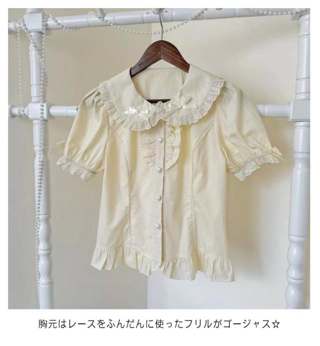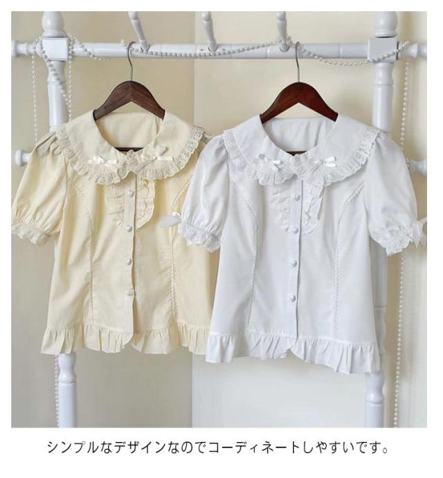 レディース ロリータ 半袖 清楚 シャツ 半袖ブラウス 春夏 ロリィタ 重ね着 ゴシック きれいめ コットン かわいい ブラウス ゴスロリ 秋 パフスリーブ クラロリ 姫ロリ フリル レース ホワイト 丸襟 お人形 大きいサイズ トップス