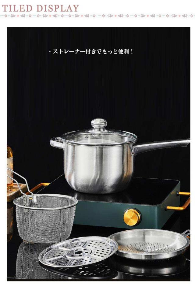 鍋 調理用品 ストレーナー付 揚げ物 キッチン用品 5点セット キッチンツール 茹でざる 蓋付き ステンレス コンパクト マルチポット 調理器具 IH対応 新生活 一人暮らし 片手鍋 お鍋
