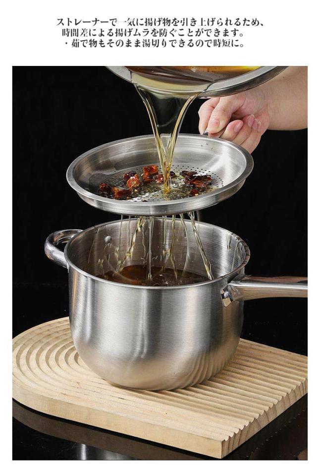 | ・IH・ガス火対応!ストレーナー付きマルチポット ・ストレーナー付きでもっと便利! ・中の様子が確認しやすいガラス蓋です。 ・ストレーナーで一気に揚げ物を引き上げられるため、時間差による揚げムラを防ぐことができます。 ・茹で物もそのまま湯切りできるので時短に。 ・深さがあるので、和え物も混ぜやすく、揚げ物調理ではまわりに油が飛び散りにくい。 | |