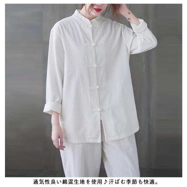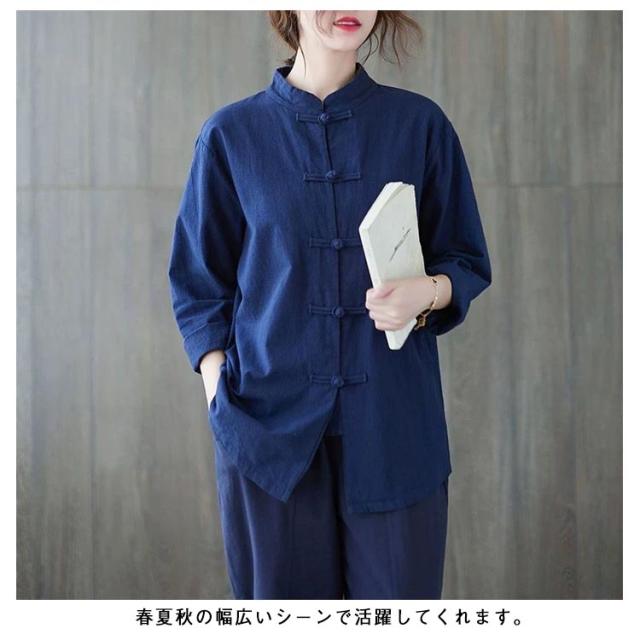 チャイナ風シャツ 長袖 チャイナ風シャツ 半袖 ナチュラル トップス チャイナブラウス シャツブラウス 立ち襟 ブラウス カジュアル おしゃれ トップス チャイナボタン 羽織り ゆったり シンプル 無地 春夏 秋 送料無料