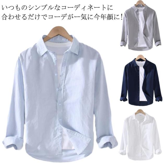 リネンシャツ 長袖シャツ スリム メンズ リネンシャツ 綿麻シャツ 涼しい 長袖 白シャツ トップス メンズシャツ リネン カジュアルシャツ 麻混 リネンシャツ 大人 ライトアウター 爽やか お出かけ 旅行 おしゃれ 父の日 プレゼント ギフト