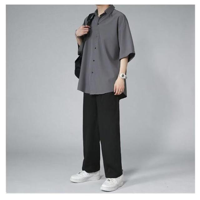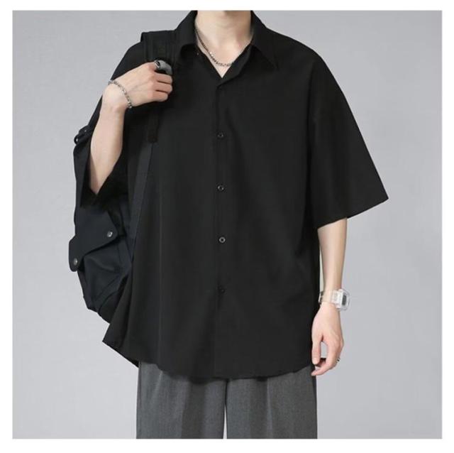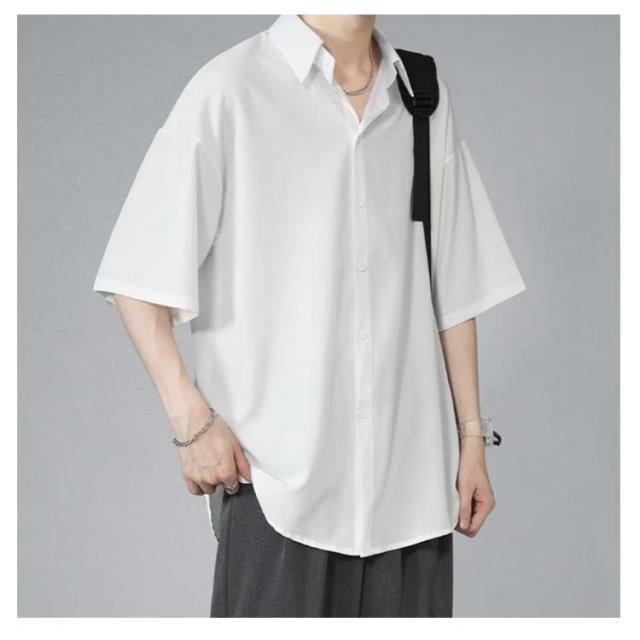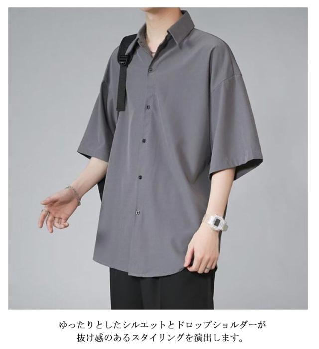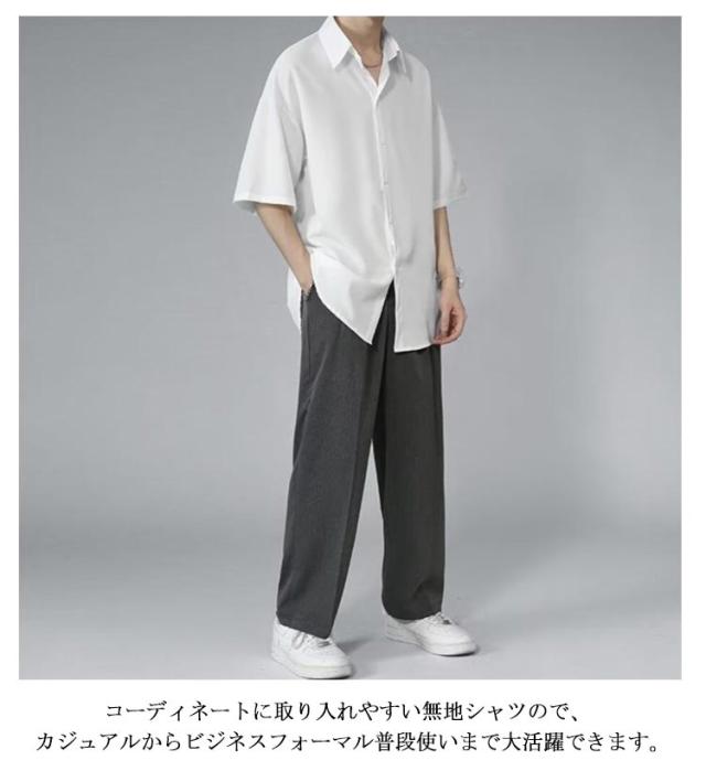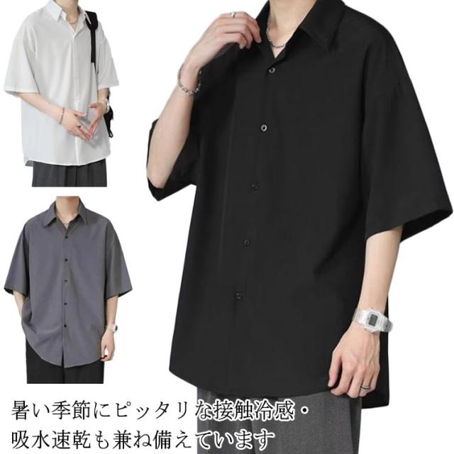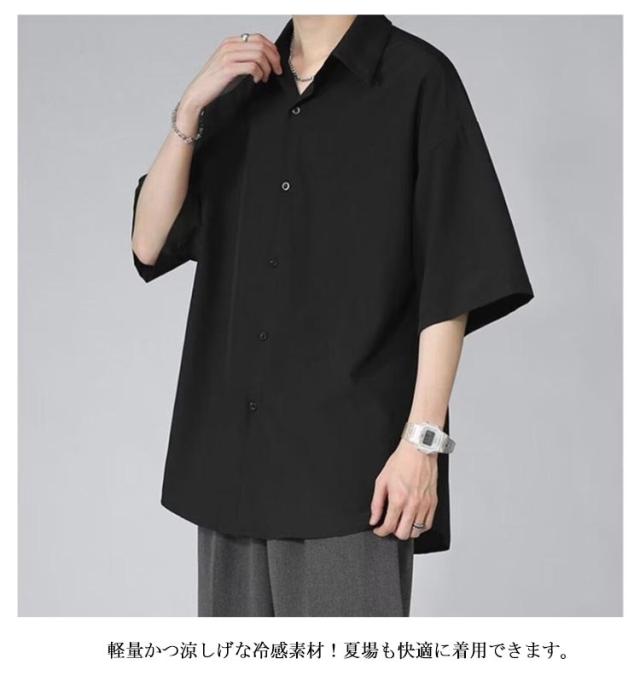 シャツ ロングシャツ サラサラ メンズ シワにならない シワにならない メンズ 半袖 夏物 ゆったり 無地 半袖シャツ 涼しい ビッグシルエット オーバーサイズ ビッグシャツ ビジネスシャツ