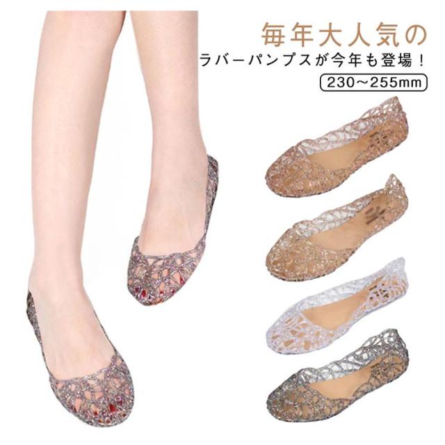 | 足元にキラキラサンダルをプラスして夏らしい遊びごころを! 毎年大人気のラバーパンプスが今年も登場! 6サイズ4カラー、お気に入りがきっと見つかる! 柔らかなゴム素材のパンプスだから足にやさしくフィット! メッシュだから足も蒸れず涼しく快適な履き心地も魅力です。 | |