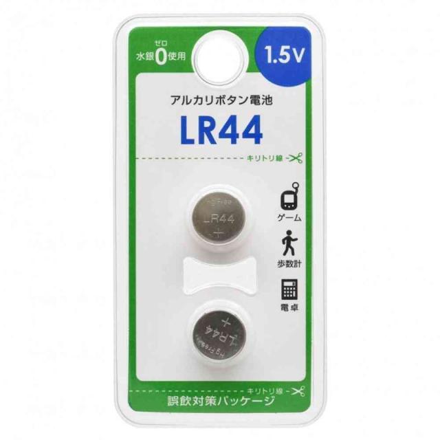 オーム電機 アルカリボタン電池 LR44 2個入