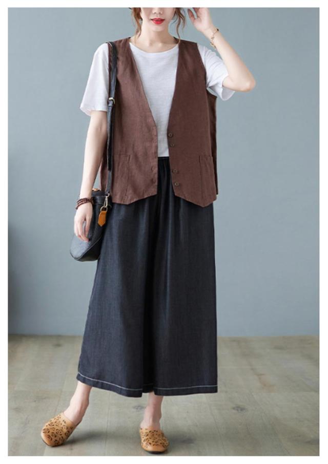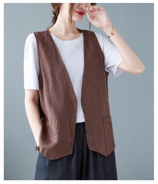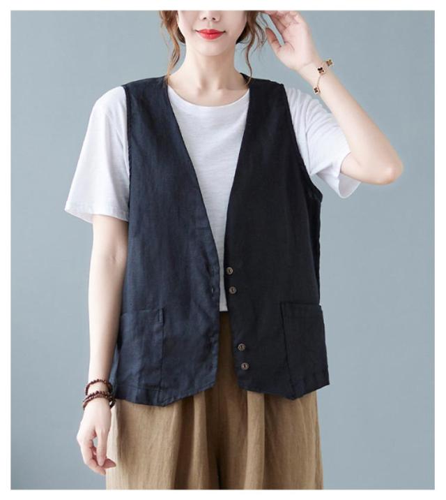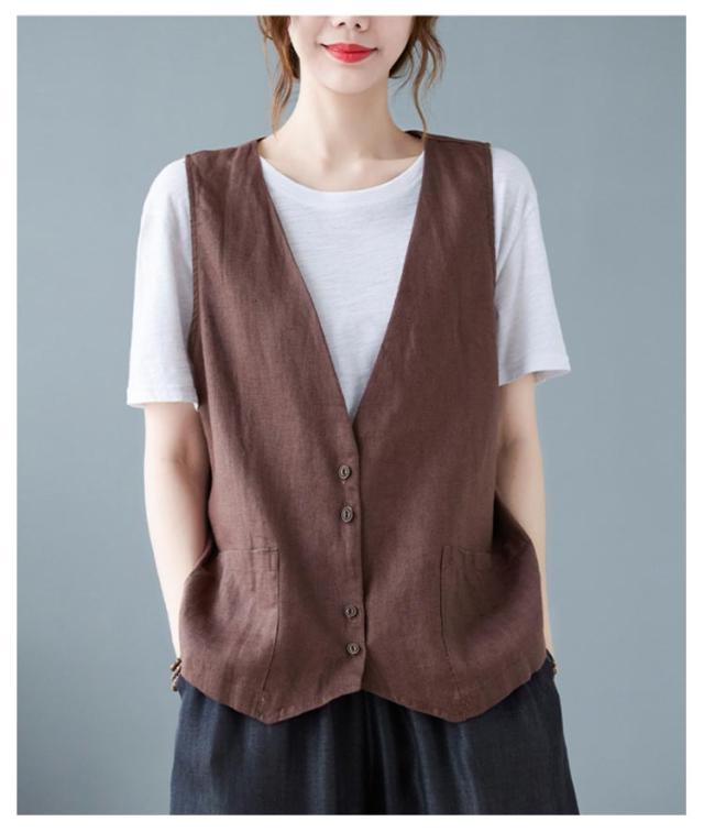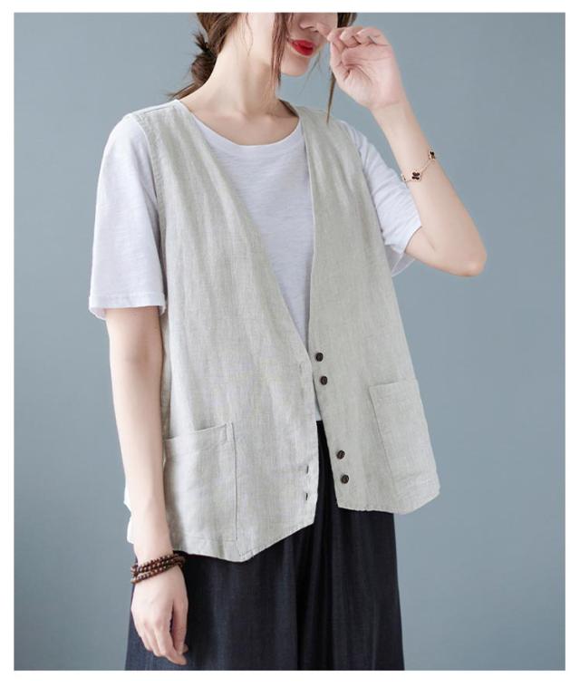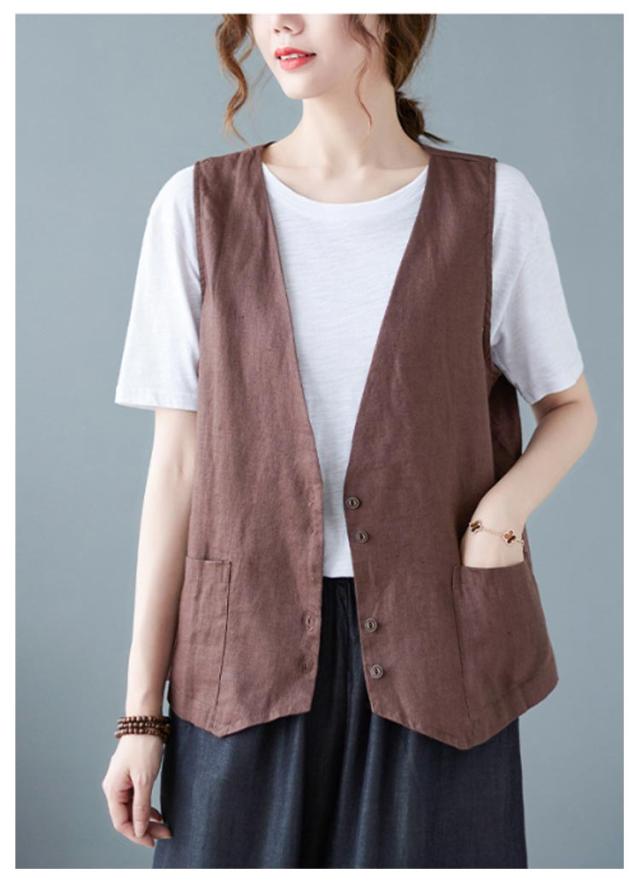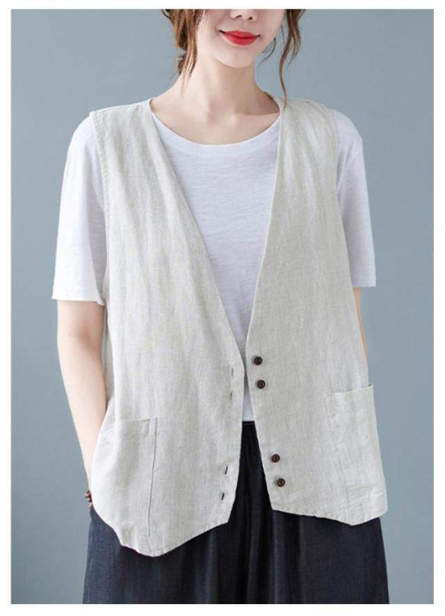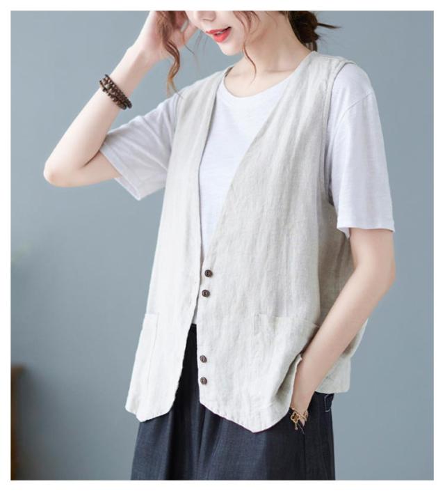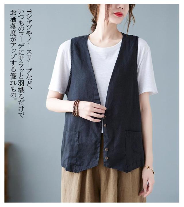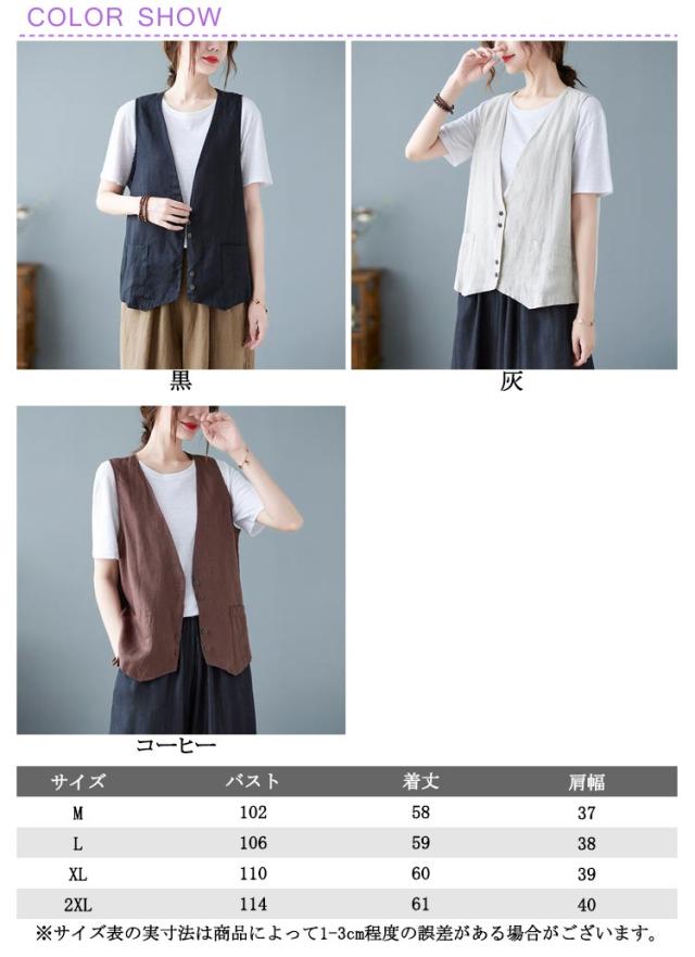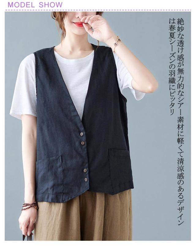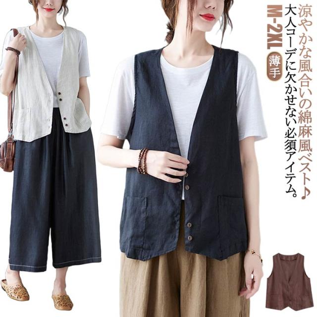 ジレ レディースジレ レディース 大きいサイズ 無地 ジレンチ レイヤード 前開き 夏 ベスト コットン リネン トップス 綿麻 ショート丈 春 ノースリーブ 夏 秋 ゆったり 大人 着回し おしゃれ シンプル ナチュラル