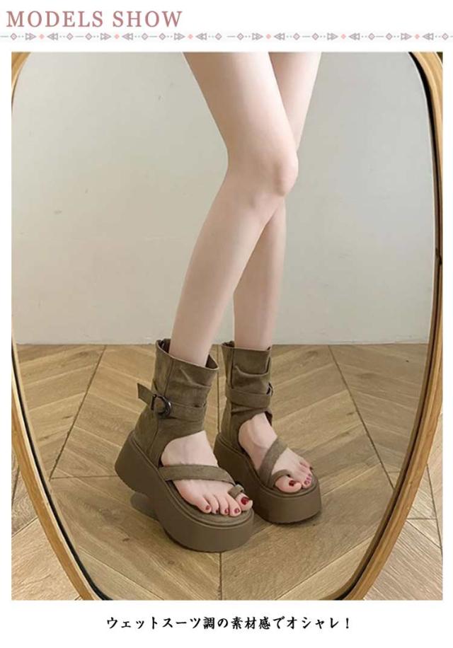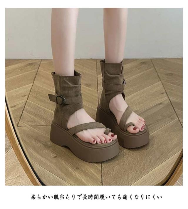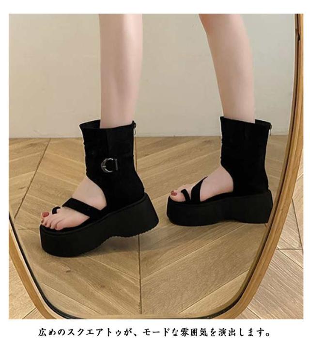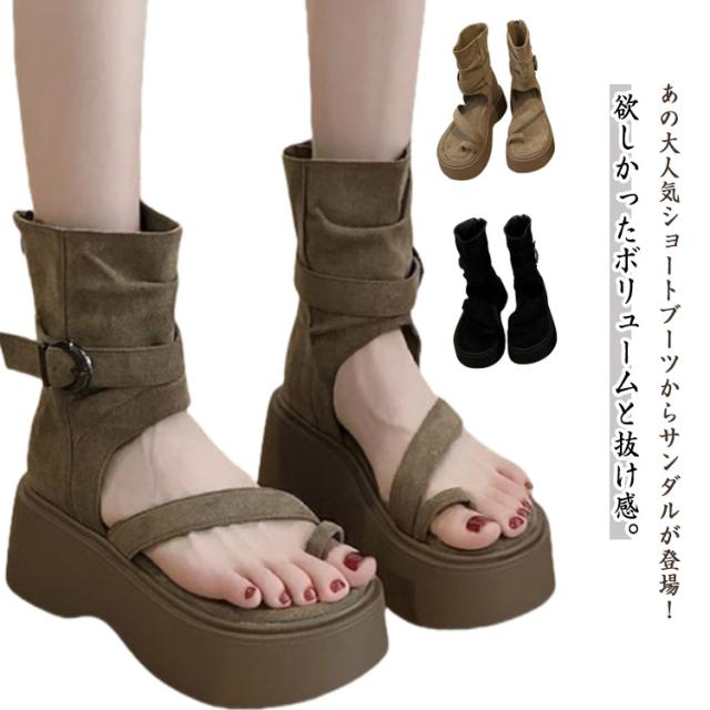 黒 ブーツサンダル ブーツサンダル インヒール ウェッジソール 厚底サンダル 靴 ショートブーツ 厚底サンダル フラットシューズ サマーブーツ レディース ブーツサンダル 歩きやすい 厚底シューズ ウエッジソール 厚底サンダル 春夏