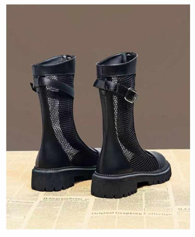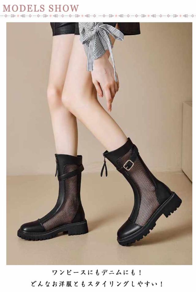 歩きやすい メッシュ サマーブーツ カジュアル ブーツサンダル ロングブーツ ショートブーツ 黒 ブラック シースルー 夏 ブーツサンダル 疲れにくい 痛くない レディースブーツ 太ヒール ブーツサンダル サンダル 大きいサイズ ローヒール