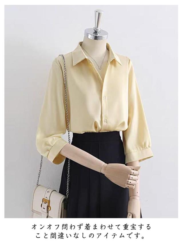 七分袖 レディース オフィス シャツ シャツ スキッパーシャツ ブラウス カジュアル トップス オーバーサイズ シャツ 韓国 開襟シャツ 長袖 夏 春 ゆったり 大きいサイズ 体型カバー 上品 Vネック カジュアル ブラウス ブラウス シャツ