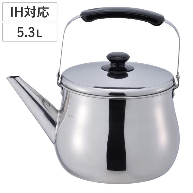 やかん 5.3L IH対応 リラカン 広口 ステンレスケトル ( ケトル 大容量 ガス火対応 ステンレス 薬缶 ステンレス製ケトル シンプル 5.3リットル 湯沸かし 麦茶 お茶 ヤカン 洗いやすい )