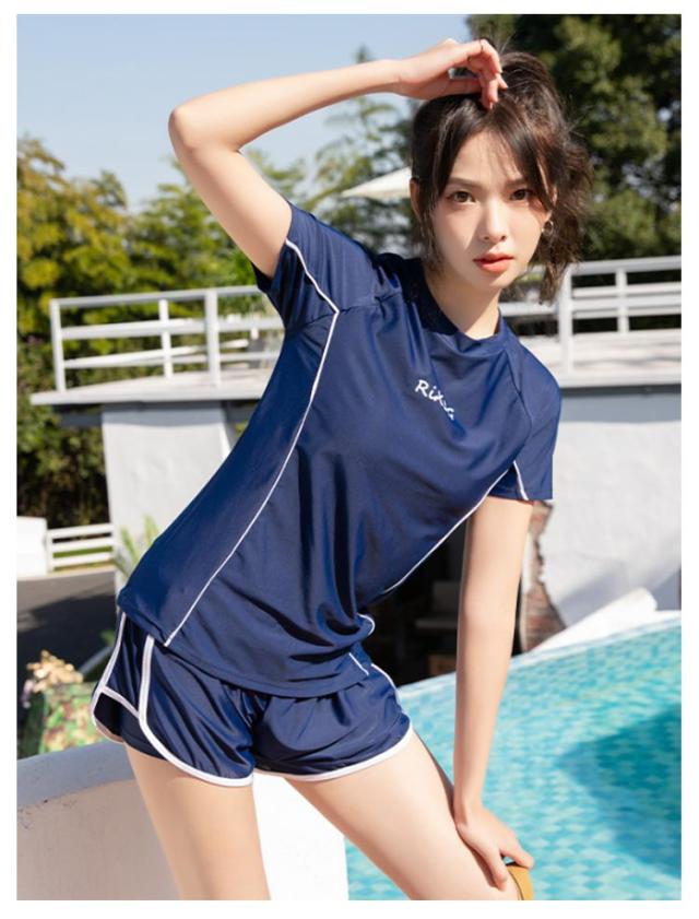 レディース レディース 中学生 水着 セパレート 水陸両用 高校生 ジュニア水着 半袖スクール水着 パッド付き 2点セット 紫外線対策 日やけ防止 スイムウェア ガールズ シンプル おしゃれ スイミング
