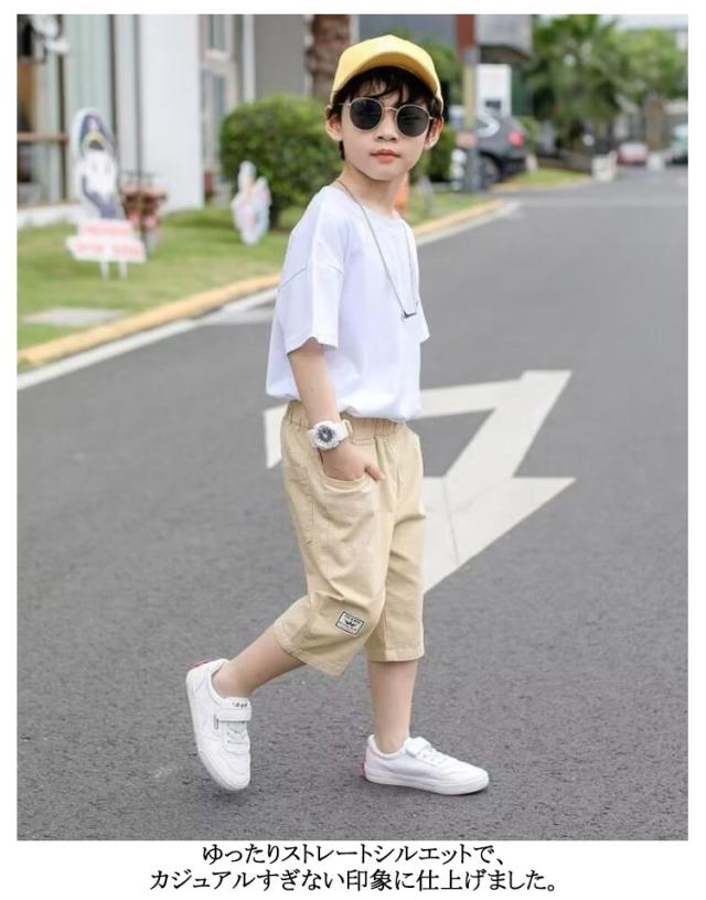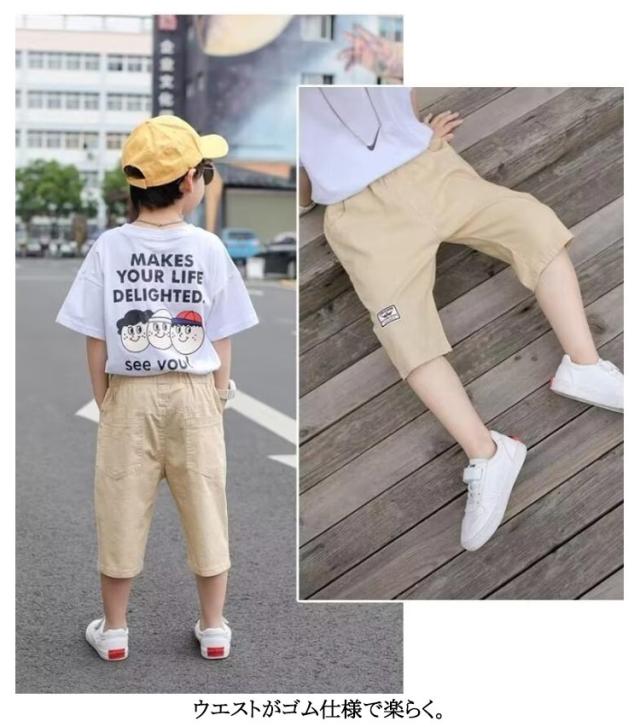 パンツ キッズ 七分丈パンツ 子供服 綿麻 パンツ クロップドパンツ 小学生 無地 ハーフパンツ 薄手 ゆったり ウエストゴム 膝下 ボトムス 子ども服 ジュニア ショートパンツ 中学生 カジュアルパンツ クロップド ズボン 夏 シンプル 通学 お出かけ 大きいサイズ