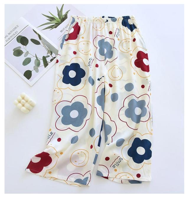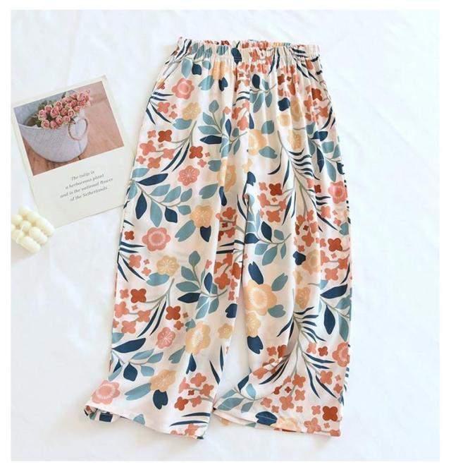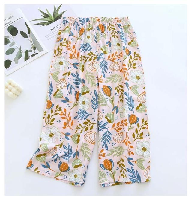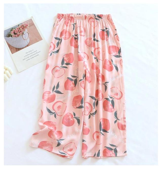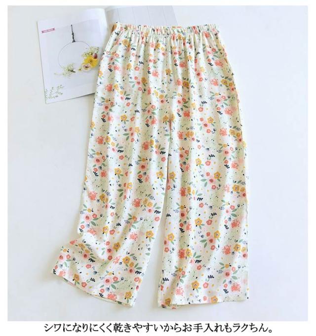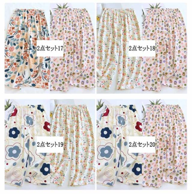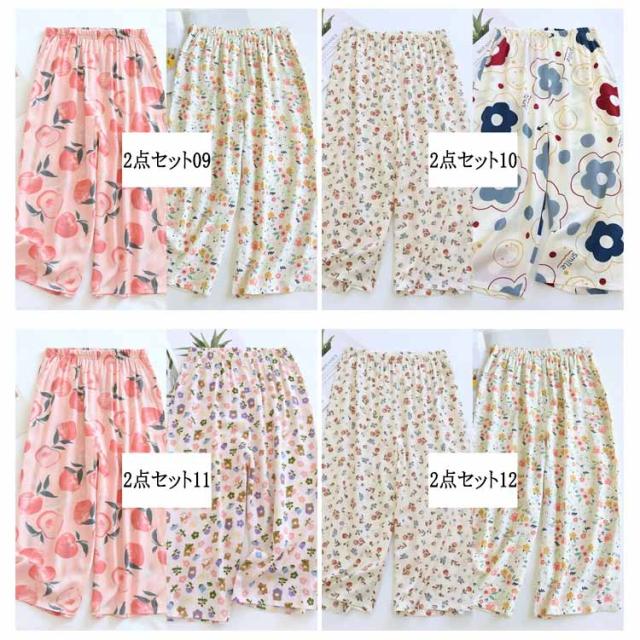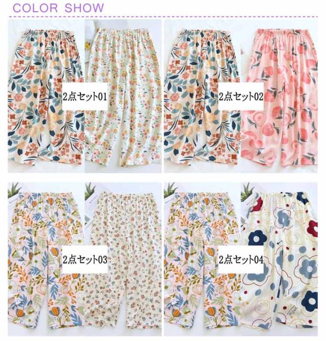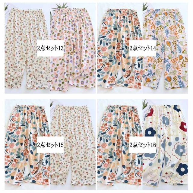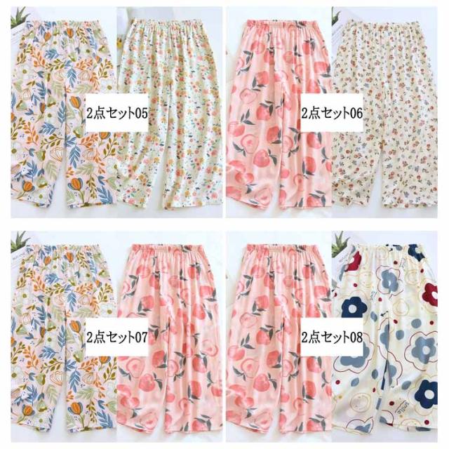 ステテコ 2枚セット 部屋着 ステテコ レディース ルームウェア 花柄 フルーツ柄 ひんやり ワイドパンツ 7分丈 涼感 さらさら ルームパンツ 涼しい リラックスパンツ ボトムス 春夏 大きいサイズ