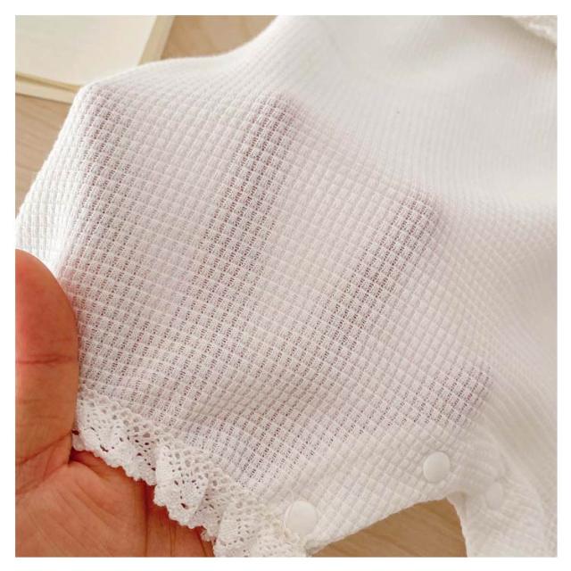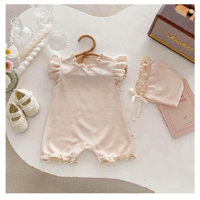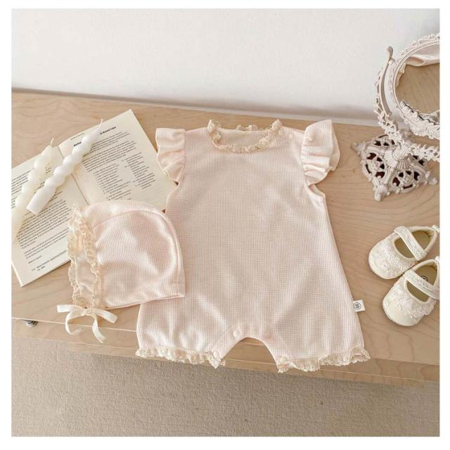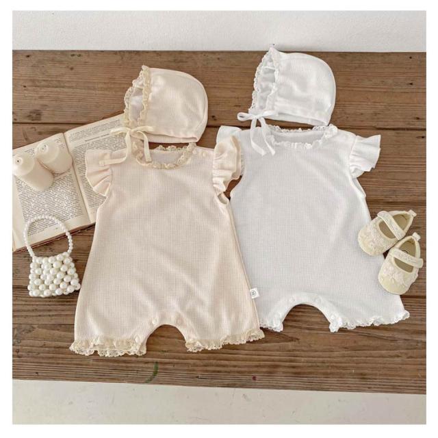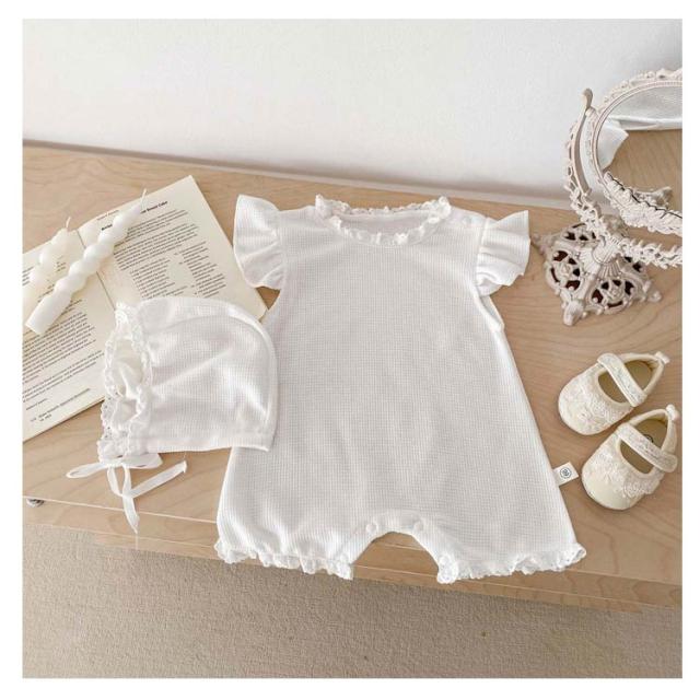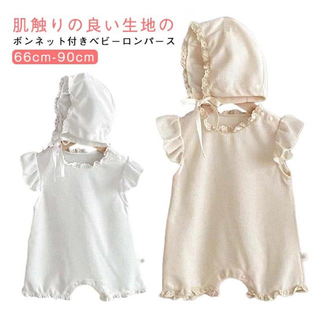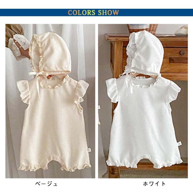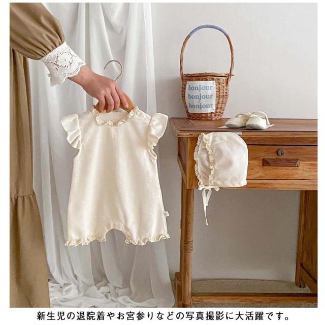秋 + ギフト 韓国子供服 ボンネット) お宮参り 新生児 退院着 プレゼント ベビー服 セレモニードレス 女の子 男の子 (ロンパース 夏 綿 春 セレモニードレス 出産祝い 結婚式 お宮参り ベビードレス 撮影 長袖 白 赤ちゃん ワッフル生地