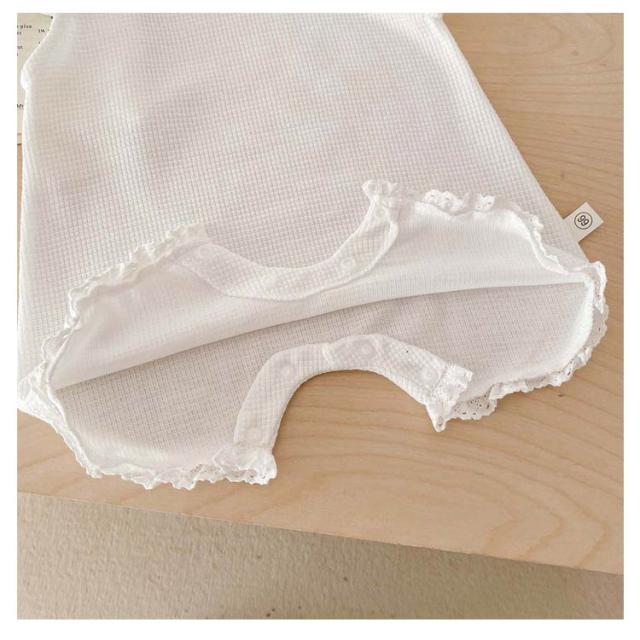 | 肌触りの良い生地のボンネット付きベビーロンパース ボンネットや首元、袖口にあしらわれたコットンレースが可愛いポイント ボンネットはクラシカルヨーロッパ調。首の下でひもを結ぶタイプです。 新生児の退院着やお宮参りなどの写真撮影に大活躍です。 | |