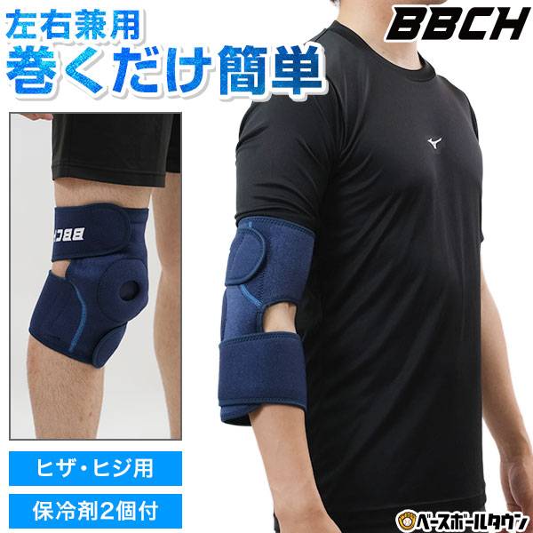 野球 ヒザ・ヒジ用アイシングサポーター ベルト一体型 保冷剤2個付き 取替え 左右兼用 膝 肘 冷却 冷感 固定 捻挫 打撲 炎症 ケア サポート クールダウン アイス アイシング 冷やす ひんやり サポーター スポーツ 部活 リハビリ 男女兼用 繰り返し使用可 夏 夏用 熱中症 BBCH