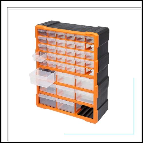 39 グリッド パーツキャビネット TOPIND パーツ収納 パーツキャビネット工具箱 パーツケース 引出しストッパー付 引出し(オレンジ)