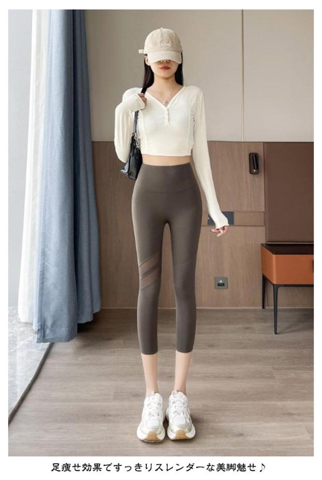 | おしゃれなシースルーライン入りの7分丈ヨガレギンス。【M−2XL】 吸水性、速乾性に優れ、さらりとした質感で気持ちのよい着心地。汗による肌へのべたつきを軽減し運動中の体も快適でドライな状態に◎ 洗濯してもすぐ乾いて、とっても便利。 足痩せ効果ですっきりスレンダーな美脚魅せ♪ 生地は薄すぎず、厚すぎずのオールシーズンに着回せることもポイント! 伸縮性のある素材で、動きを妨げずとても着やすく、様々な体型に対応可能です。 フルレングスでウエスト部分もしっかり覆ってくれるデザインのため、動きやすくフィットネスやトレーニング用としておすすめです◎ | |
