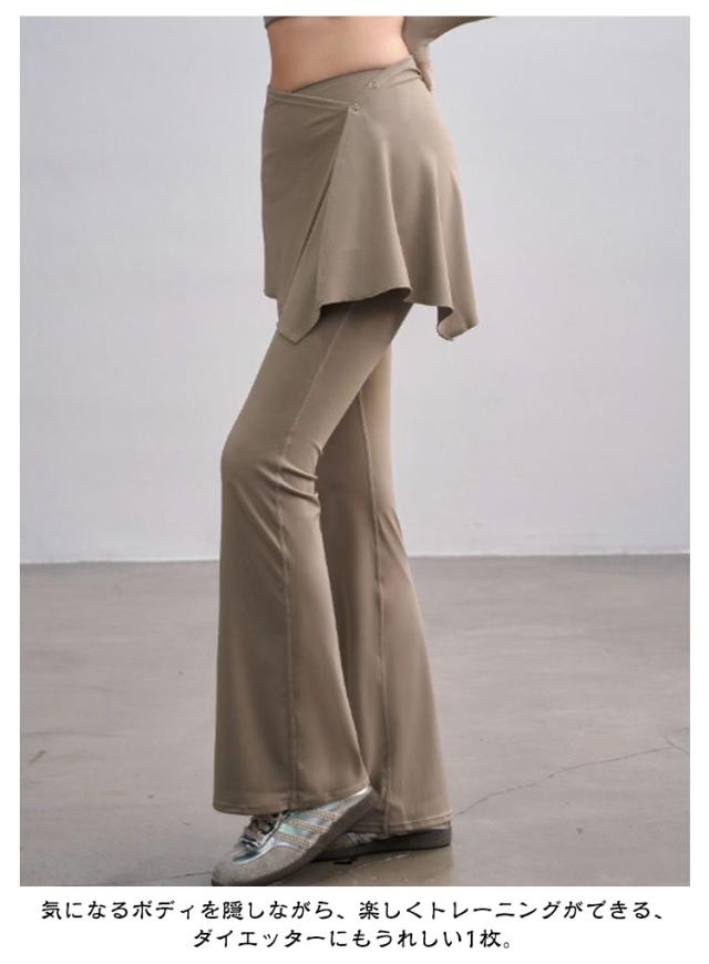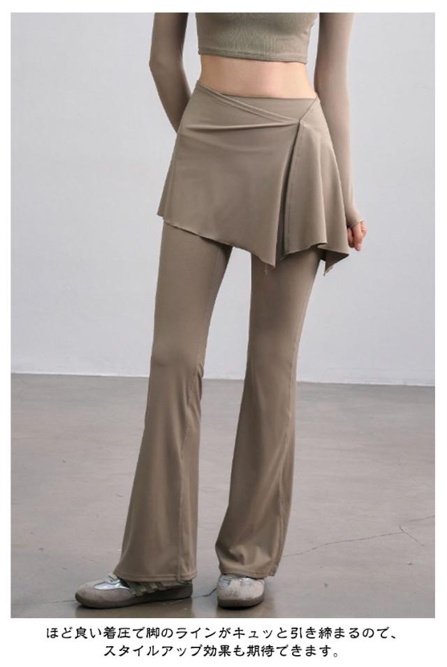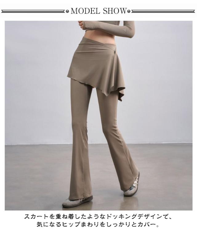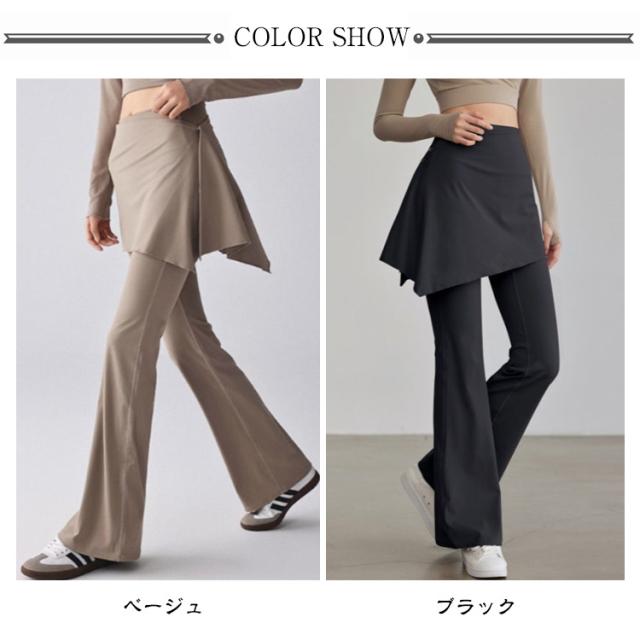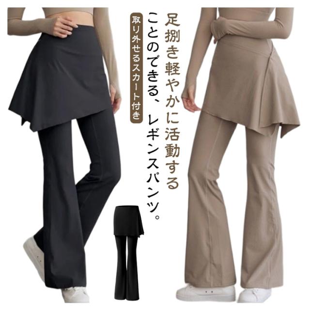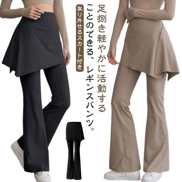 ヨガ ヨガレギンス 取り外せる ヨガウェア スカート付き フィットネスウェア スカート一体型 レギンスパンツ フレア ピラティス フィットネス 取り外せる ランニング パンツ ヨガパンツ フレアレギンス