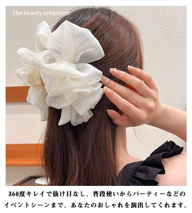 髪飾り 大きめ ボリューム シュシュバンスクリップ フリンジ パール ヘアアクセ リボン 華やか 【2個セット】ヘアクリップ 髪留め 上品 ヘアアクセサリー 大人 【2個セット】ヘアクリップ キラキラ リボンクリップ しっかり留まる 可愛い