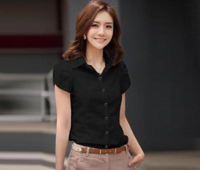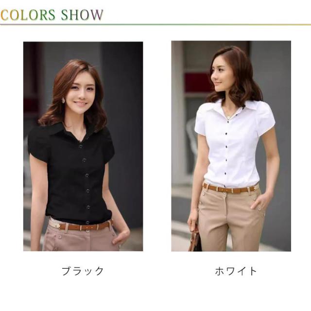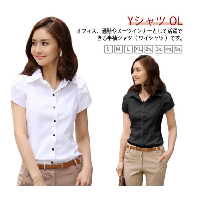 カジュアル OL ビジネス トップス ブラウス レディース 半袖 シャツ 制服 事務服 パフスリーブ ホワイト レディース フォーマル 白シャツ パフ袖 ワイシャツ Yシャツ オフィス 無地 フレア 通勤 襟付き 大きいサイズ 春 夏 秋 シャツ ブラック