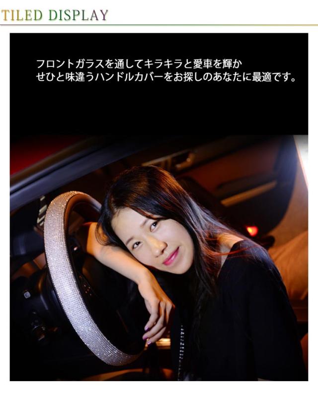| 高品質のPUレザーとラインストーンのハンドルカバー。 フロントガラスを通してキラキラと愛車を輝かせひと味違うハンドルカバーをお探しのあなたに最適です。 クリスタルラインストーンが手のひらに程よい刺激を与え運転の疲れを和らげます。 カバーを取り付けると握りが太くなりグリップも良くなることで操作性がグンとアップ。 さらに滑り止め効果もあるので、運転中の安全を確保できます。 オールシーズン使用OK! ハンドルカバーを変えるだけで内装イメージが変わる。 | |