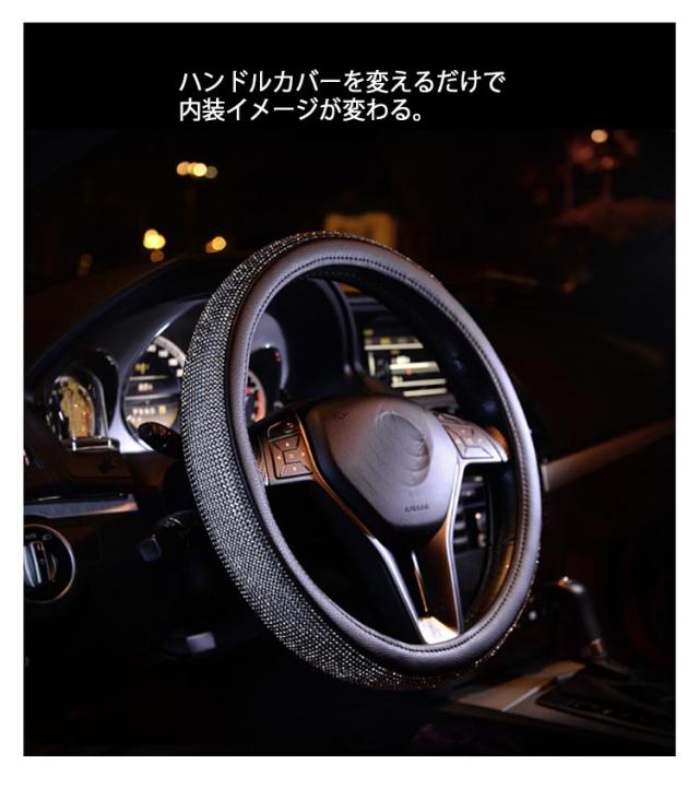 ラインストーンハンドルカバー ラインストーン 普通車 保護カバー ハンドルカバー 軽自動車 ハンドルカバー キラキラ ビジュー付 車 ステアリングカバー 握りやすい 簡単装着 おしゃれ 可愛い 四季通用 オールシーズ 車用品 カー用品 内装パーツ