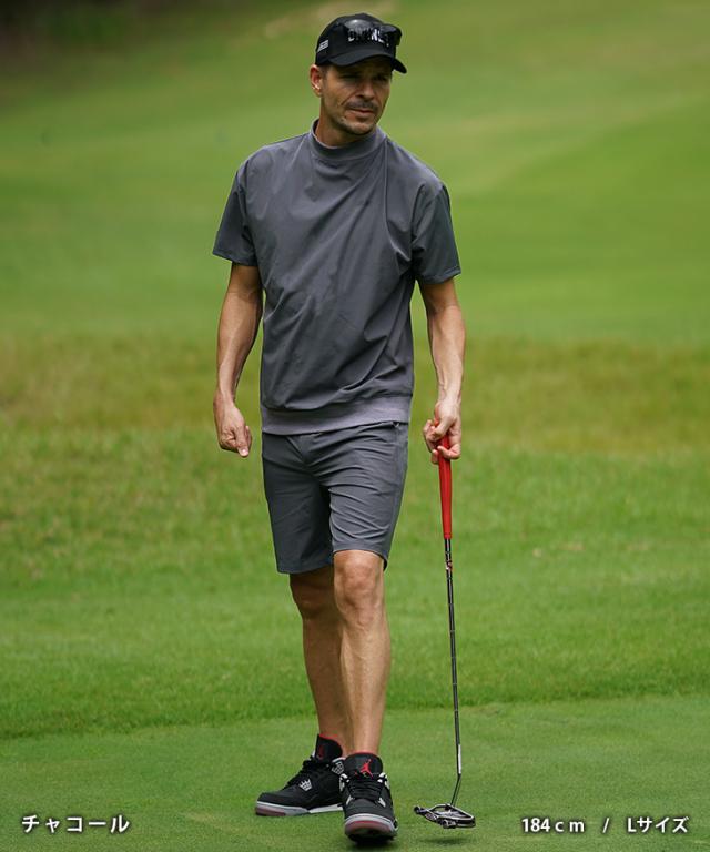 ゴルフウェア メンズ セットアップ 上下セット メンズ ゴルフ モックネック 半袖 ゴルフシャツ メンズ ロゴ ハーフパンツ ンズ ゴルフ パンツ メンズ 夏 新作
