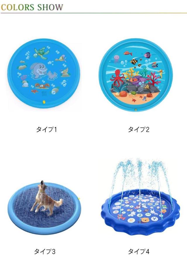 | 【広い面積でたっぷり水遊び】直径170cmの広いサイズで、大人も子供も一緒に楽しめます。ペット用にもぴったりで、犬や猫も喜んで遊べるスペースを提供します。家族みんなで水遊びを楽しむことができます。 【畳めばA4サイズ】折り畳むとA4サイズになるので持ち運びがラクラクのコンパクトサイズに。 【簡単お片付け】終わった後は、水を抜いて軽く流し、乾かすだけ。組み立て作業もないのでお片付けもラクラク。 【丈夫なPVC素材】表面に凹凸加工だされたPVC素材で、傷がつきにくく、丈夫で滑りにくいように作られています。 【約0.4mmの厚み】0.43mmの厚みで、より厚いPVC素材を使用しています。厚手のマットは耐久性に優れています。 【滑り止め加工】マット表面には凹凸の滑り止め加工がされています。 【5mmのワイド圧着】マットの箸の接着幅は、約5mmありますので、接着が剥がれにくく安心してお使いいただけます。 【側面についたバルブ】下側側面についたバルブは、水道から流れる水圧の力をそのまま噴水に伝えやすくなっています。 【噴水の高さ調節】水量で、噴水の高さを調節するので蛇口の調節で簡単に噴水の高さ調節ができます。 | |