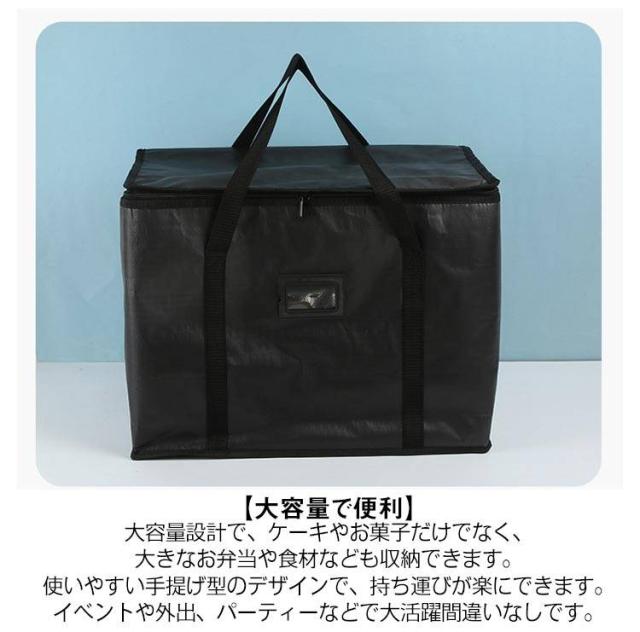 | 【保温・保冷機能で食べ物を長時間新鮮に】 このケーキ保温バッグは、アルミ箔の内側で保温・保冷機能がしっかりと効き、食べ物の温度を長時間キープします。配送や外出先でも、ケーキやお弁当、冷たい飲み物などを新鮮な状態で届けられます。 【大容量で便利】 大容量設計で、ケーキやお菓子だけでなく、大きなお弁当や食材なども収納できます。使いやすい手提げ型のデザインで、持ち運びが楽にできます。イベントや外出、パーティーなどで大活躍間違いなしです。 【耐久性に優れたアルミ箔素材】 アルミ箔素材で作られており、しっかりとした強度があります。高温・低温に耐えるので、外出時の食べ物の品質を守ります。外部の温度から食材を守り、衛生的にも安心です。 【多用途で活躍】 ケーキやお弁当、デザートだけでなく、冷たい飲み物やアイスクリームの持ち運びにも便利です。宅配サービスやピクニック、キャンプなどのアウトドア活動にも最適です。 【簡単に清潔に保つ】 手軽に洗えるので、衛生的に保つことができます。何度でも繰り返し使えるので、コストパフォーマンスにも優れています。 | |