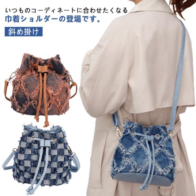デニムバッグ 巾着バッグ 斜め掛け ショルダー レディース ハンドバッグ デニム デニムバッグ 巾着バッグ ショルダーバッグ 軽量 花火 浴衣バッグ 軽いバッグ ミニバッグ デニムバッグ 大容量 ブルー ブラウン ブラック