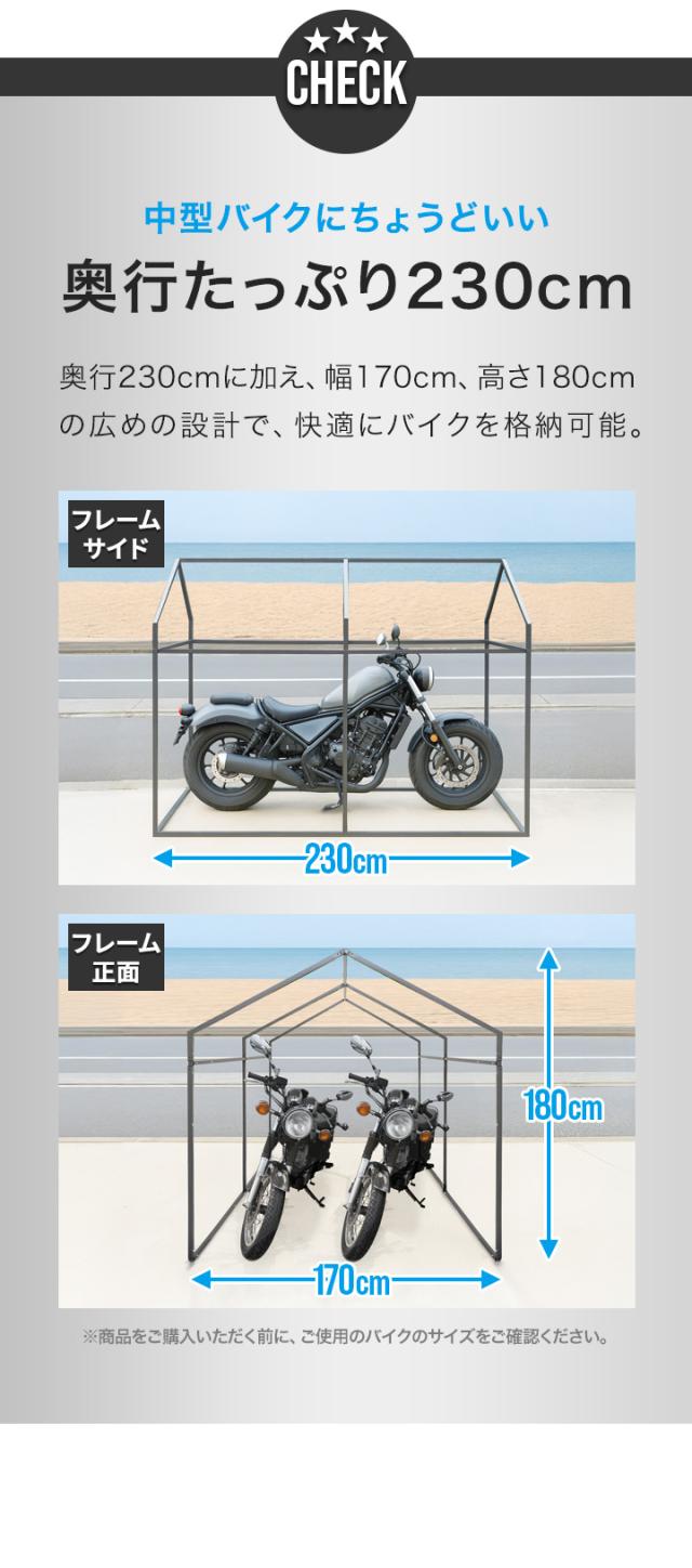バイク ガレージ 物置 1台 2台用 幅170cm×奥行230cm 高耐水/UVカット/難燃カバー バイク置き場 車庫 ガレージテント バイク用ガレージ 盗難防止 屋外 収納 組み立て式 DIY サイクルハウス 自転車置き場 雨よけ 駐輪場 原付 電動自転車 1年保証 送料無料