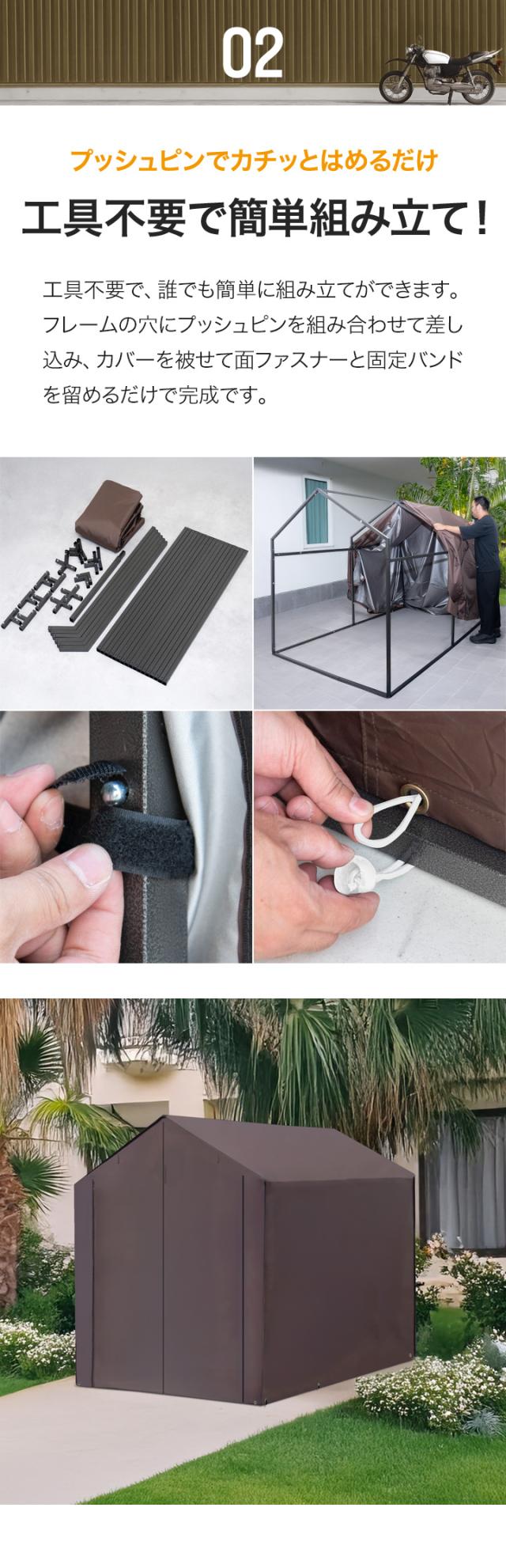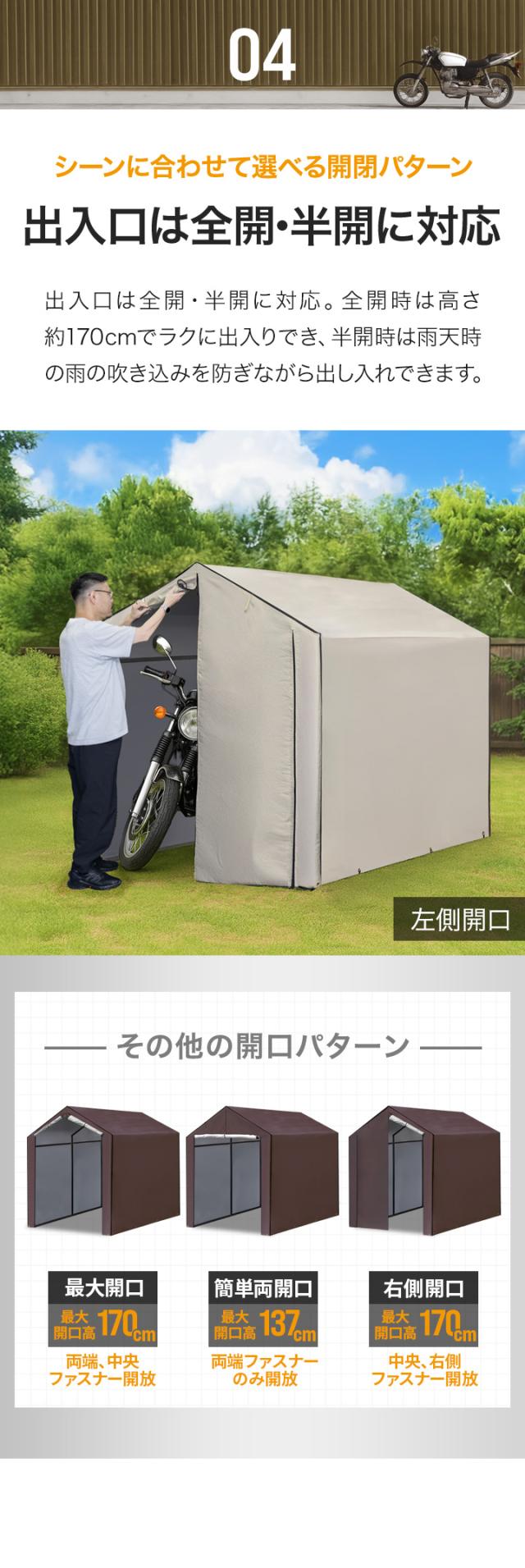 バイクガレージ バイク用ガレージ バイク保管庫 車庫 バイク置き場 バイク置場 駐車場 バイク収納庫 バイクテント サイクルガレージ サイクルポート サイクルハウス サイクルパーキング 自転車用ガレージ 自転車ガレージ 自転車倉庫 自転車保管庫 自転車置き場 自転車置場 駐輪場 ガレージテント 物置 物置き 屋外収納 屋外物置 小屋 倉庫 納屋 収納庫 納戸 ストレージ 防犯 盗難防止 1台用 2台用 3台用 1台 2台 3台 複数台 オートバイ 電動自転車 自転車 ロードバイク ママチャリ 電動アシスト自転車 電動自転車 マウンテンバイク MTB ファットバイク 折りたたみ自転車 バイク 原付 小型バイク c中型バイク 大型バイク 50cc 125cc 250cc 400cc 750cc 1000cc ミニバイク 二輪車 三輪車 乗用玩具 おもちゃ 日用品 スチール製 日よけ 日除け 雨よけ 雨除け 紫外線 UVカット 耐水 難燃 撥水 遮熱 庭 ベランダ バルコニー おしゃれ おすすめ 口コミ サイクル パーキング ポート ガレージ ハウス ダークブラウン 茶 ベージュ エクステリア ガーデニング 花・ガーデン・DIY エクステリア・ガーデンファニチャー ガレージ バイク・自転車用ガレージ